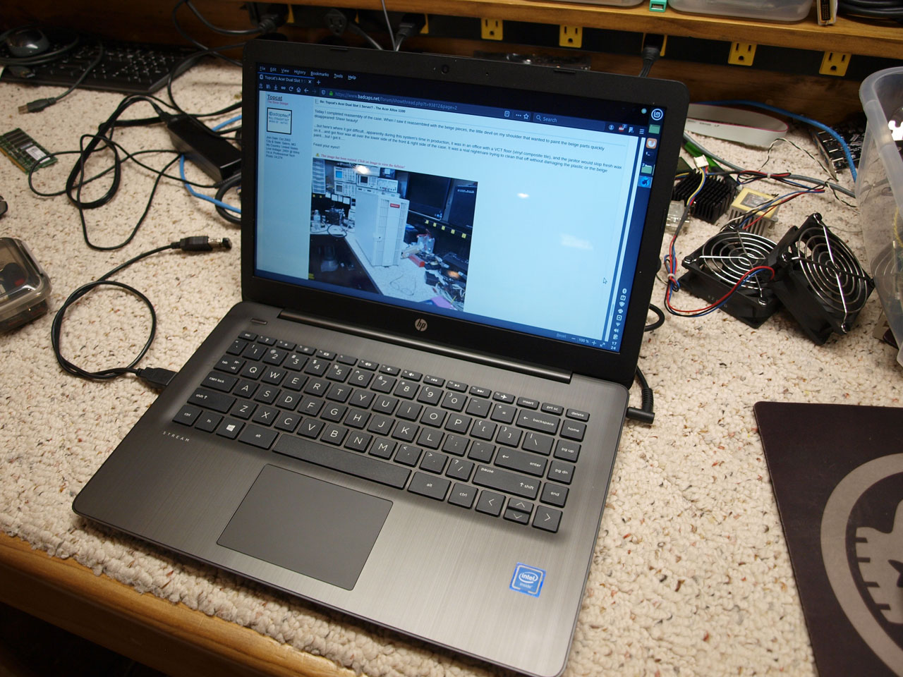 Here was a bit of a funny one today. Gal brought in a box of stuff to get rid of....in it was a brand new HP Stream netbook. Celeron Dual-core, 4gb RAM, and 32gb SSD. Real kick in the balls for the horrendous steaming pile known as Windows10 Home, she used it for about 3hrs, it did its usual automatic update nonsense, rebooted, and became so unusably slow that she shut it off and said the hell with it. The online retailer that sold it to her basically told her to go pound sand when asking to return it...and it sat in its box for about a year.....so fast forward to today; she was going to throw it away....and asked if I wanted it.... I offered to fix it, she said nah....she bought a new Macbook Pro.