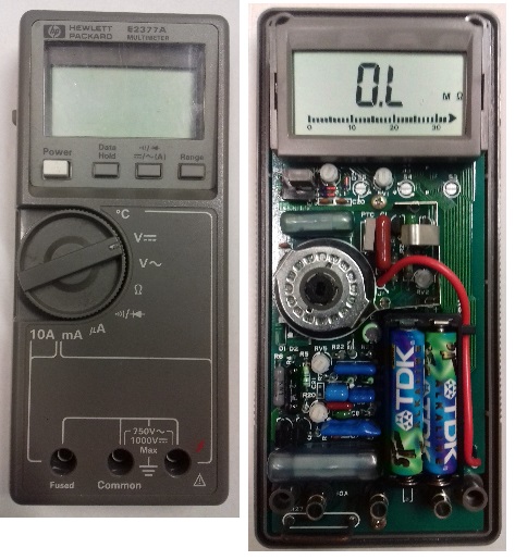 Found a HP E2377A multimeter in the trash today at work, looked dead. Opened it up to find two fresh batteries in it, and one corroded terminal from battery leakage.