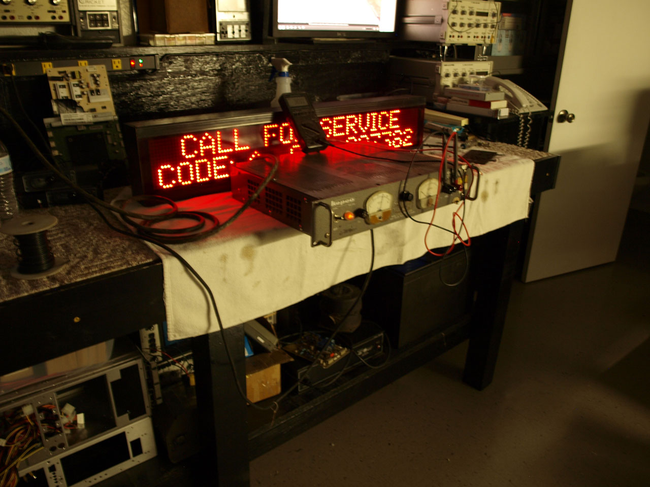 An old LED programmable sign..... "Cybernetic Data Products model ADT 7405", nothing out there on this thing. Programs through a serial port....but couldn't find any software. It does power up/work though...