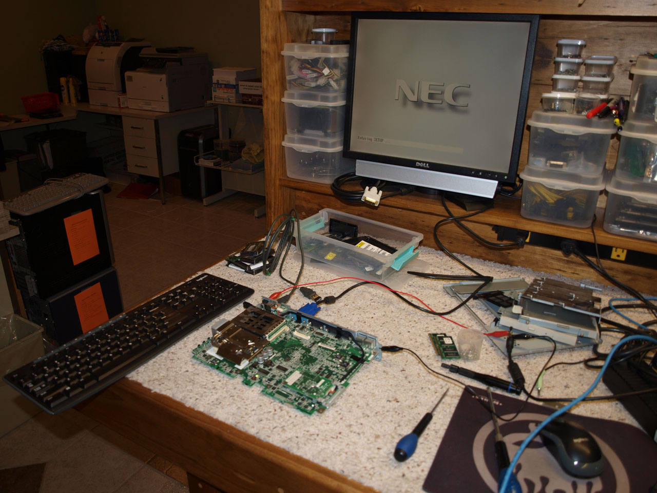 Had a couple nifty dropoffs..... The pick was a NEC Powermate all-in-one with a LCD, circa 1999; model PM 2000. There was pretty much nill out there on this thing as far as information. It was made in Japan. It had a Celeron 433 & 192mb RAM. I don't have any PC100/133 SODIMM's, so I can't upgrade that.... Originally had Win98 on it, someone up'd it to 'Miserable Edition'. No Uranium, nothing exciting on it.... Has a mega huge 6.4gb notebook HDD in it; as if by some miracle, it's good.