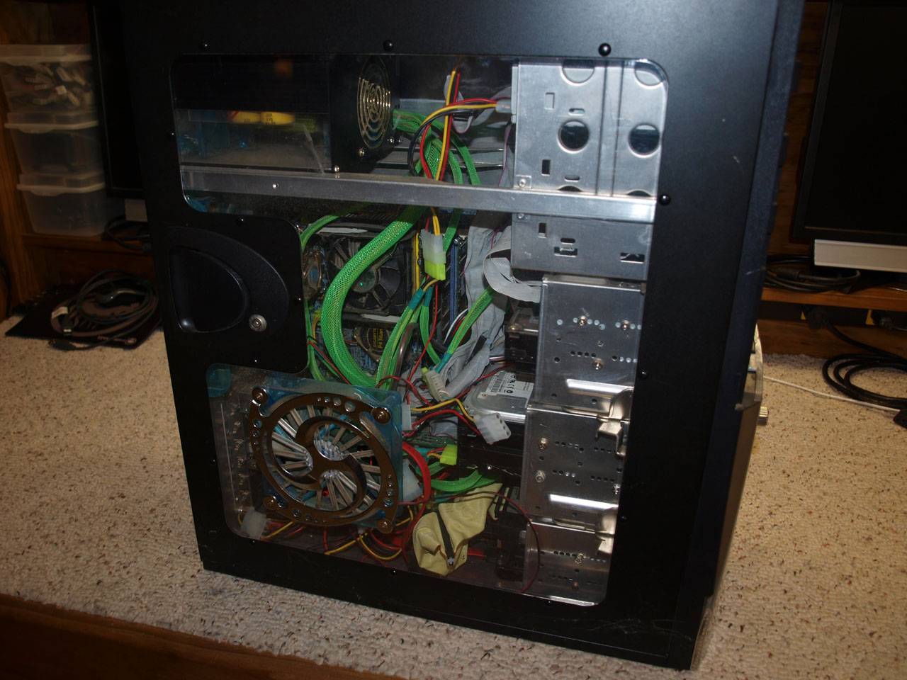 Some gamer rig in what looks like a Lian Li & Antec clone case....the case looks to be a Chieftec; solid aluminum construction. Naturally, the front door is missing....bummer....but we're not done yet!