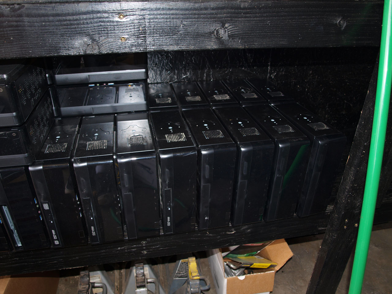 Tons of little ITX systems. Refreshing to see an EDU that actually did custom builds versus the big box stuff. This shelf is stacked 2 deep!