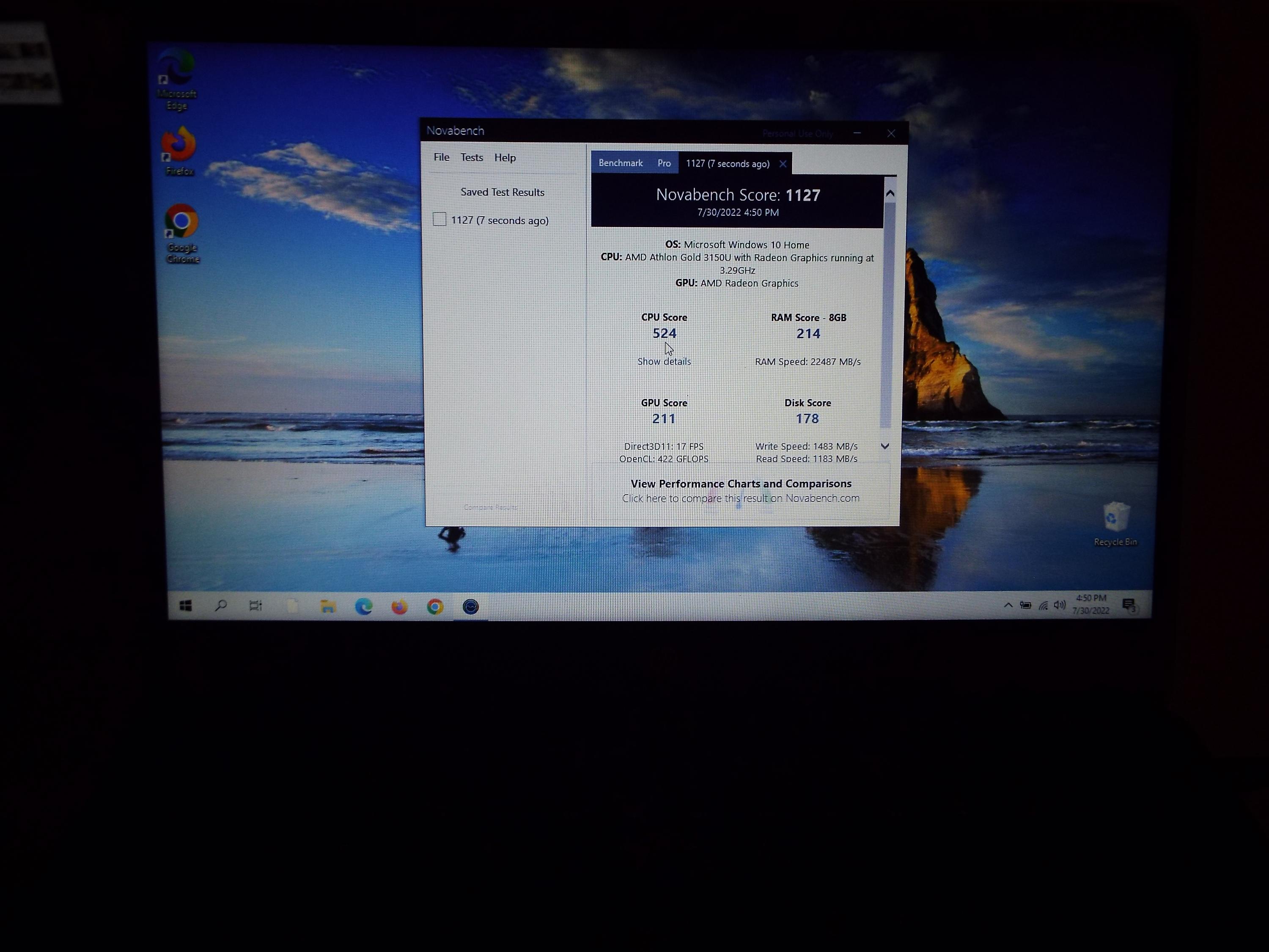 It seems to be fine with 8GB of RAM, but I'm sure it would struggle with the factory 4GB (at least this is upgradable), though I only left it in that config long enough to complete initial Windows setup and run the initial benchmarks, with SSDs (even relatively "slow" SATA ones) the use of virtual memory doesn't have nearly as much performance impact as it did back in the mechanical HDD days, but it definitely isn't good for SSD life. My previous work laptop (a Lenovo T450 I was issued in late 2015 and was replaced in 2020) only had 4GB RAM from the factory (I believe the GPU used 512MB of that) and it constantly used virtual memory until they finally upgraded it to 8GB after a year or so (and also upgraded the 128GB SSD to 256GB), and that was under Windows 7 (Though there are a ton of background security applications running on our work computers that use more RAM/CPU at idle than most personal systems would, though some OE systems that ship with a bunch of junkware that the user didn't clean up may match/exceed this).