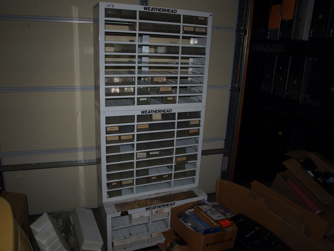 One of the finer picks...this 'weatherhead' bin cabinet. All the bins & trays are present, some are in boxes; as they had things in them. I have already got this moved into its permanent spot...it was a stash of PC fasteners & other PC stuff. I've got this cleaned up and now the daunting task of sorting it.....but it'll be worth it!!