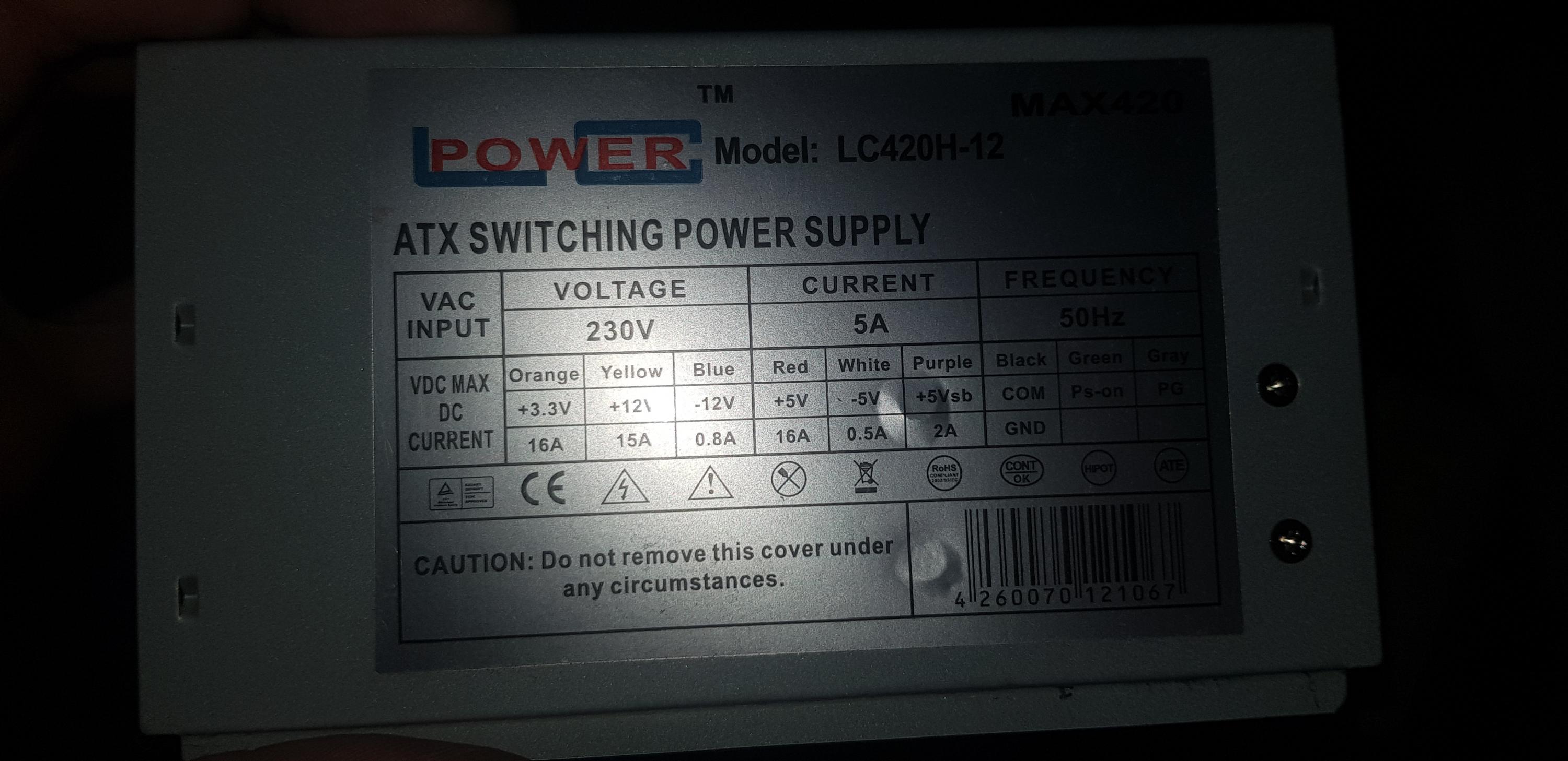 - LC-Power LC-420H-12 420W PSU (made by Huntkey, fron what I could find. 300W max as it's pretty gutless unfortunately - it does have room for improvements so that's quite the big plus. Also, I think it uses ViPER22A for the 5VSB so yay)