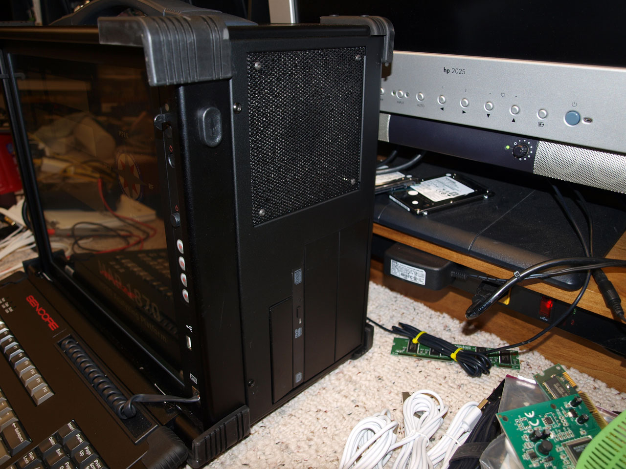 Now here's what makes this kind of unique... This luggable case is just a standard full ATX; very nice build quality aluminum construction using a normal ATX power supply. Not sure who makes this case, as the tektronix version uses the same case.