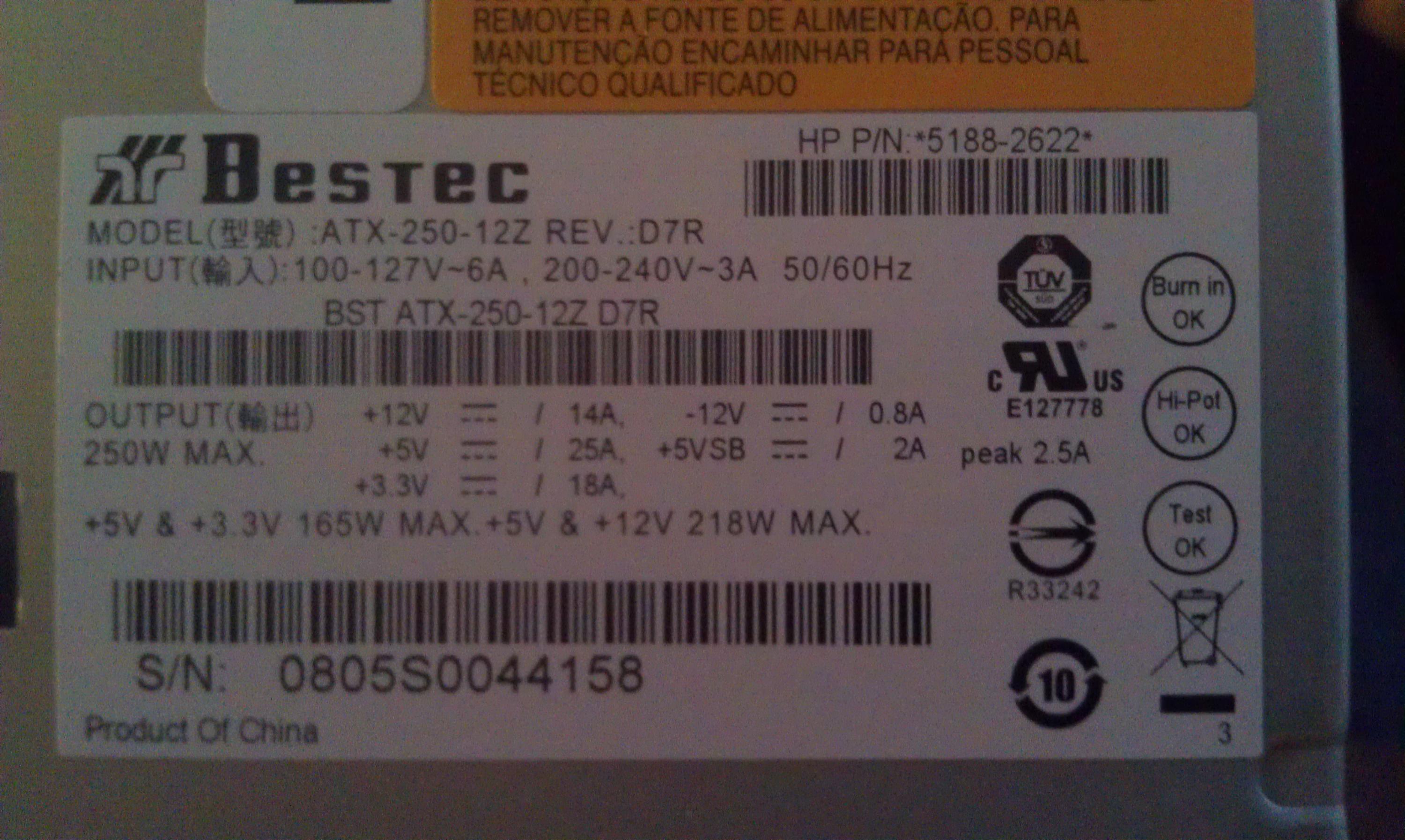 - a cheap "Mitsuko" KC-250 ATX power supply supposedly rated at 250W, more gimped version of my old King Case KC-250 ATX power supply.