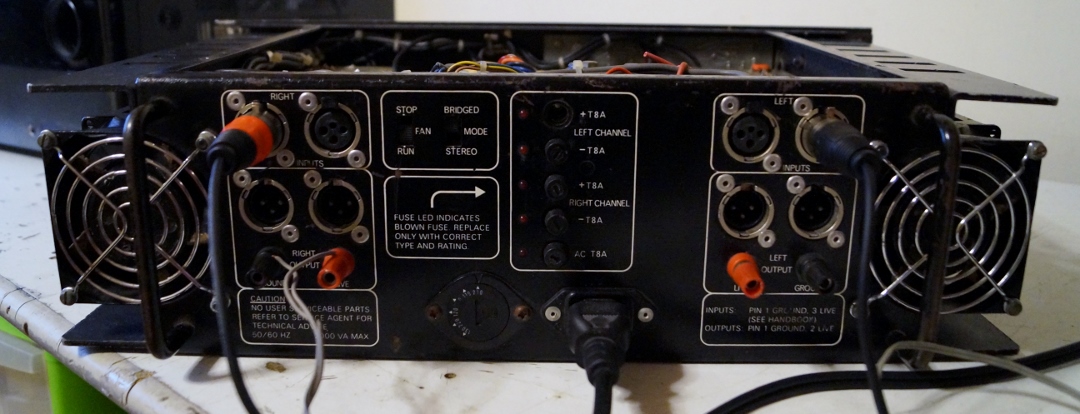 As for fuses, I don't see any markings stating what they are and a quick search doesn't pull anything up. Being a 500W amp I'd take a guess and say it originally used 250V, 2.5A fuses. I'd do more research and check to see if you can find what the originals were.