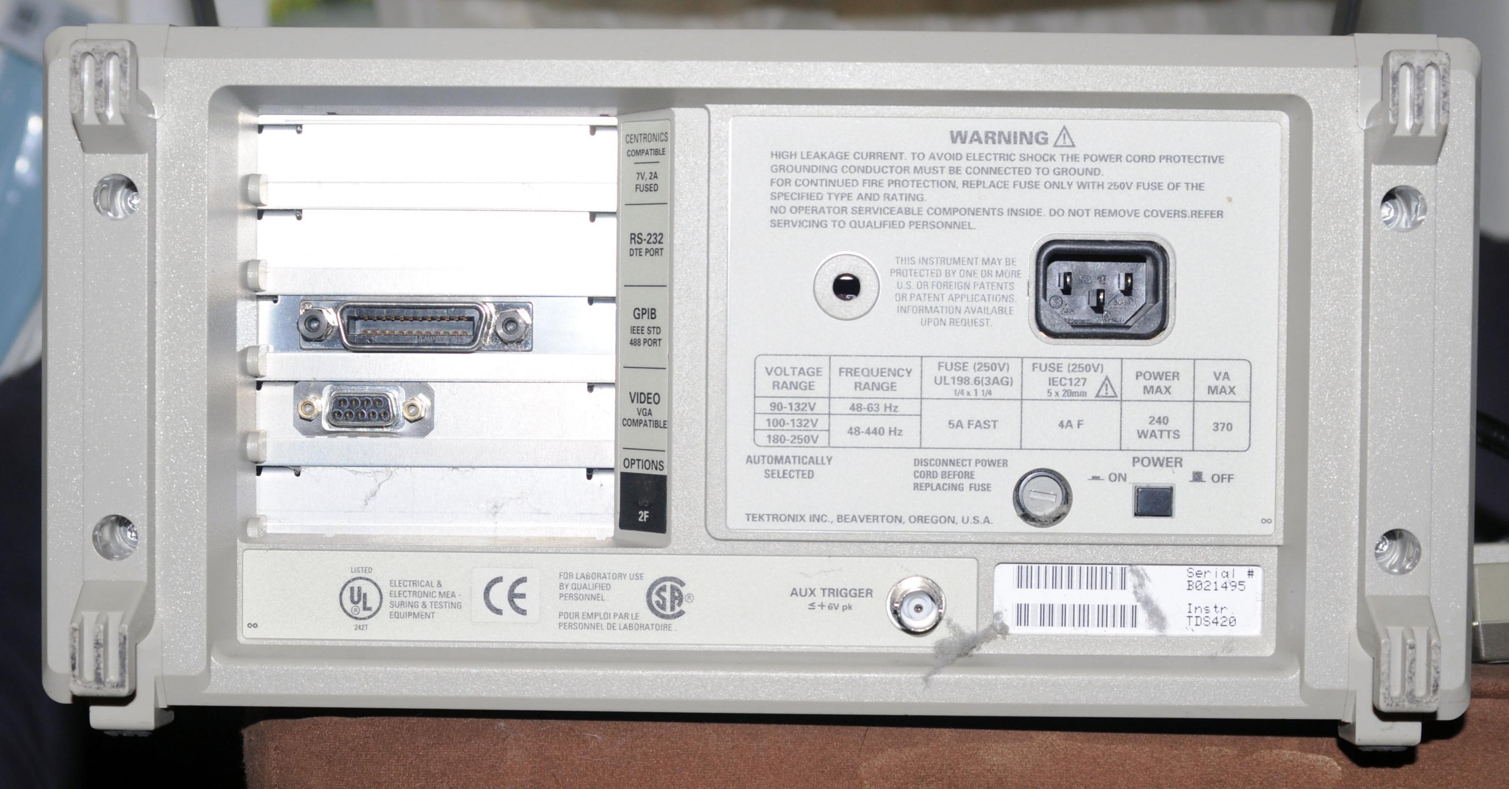 Tektronix TDS420 oscilloscope w/ two P6138 probes and manuals for a 2215. Stated as non-working, had to verify myself and now the living room reeks of dead fish...but it was turning on normally.