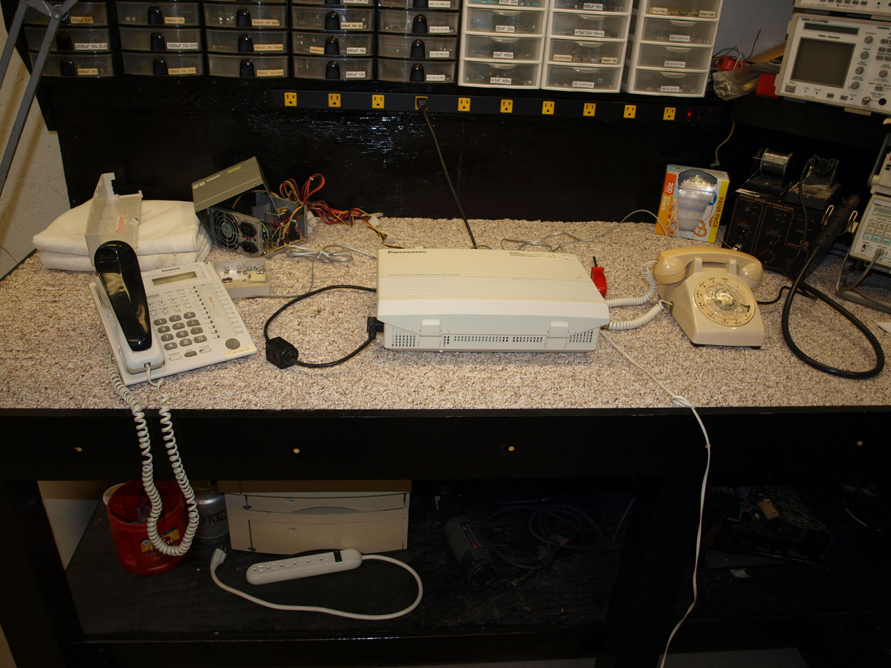About 10~12 years ago I was given this Panasonic KX-TA624 analog telephone system with its 'master phone' and box full of extension telephones. It's been up in the attic all this time, untouched/unused since I didn't have a land line. It has all the line expansion cards, making it able to handle up to 6 outside lines and 24 internal extensions. I was told this system was removed from a shopping center that upgraded to a VOIP system.