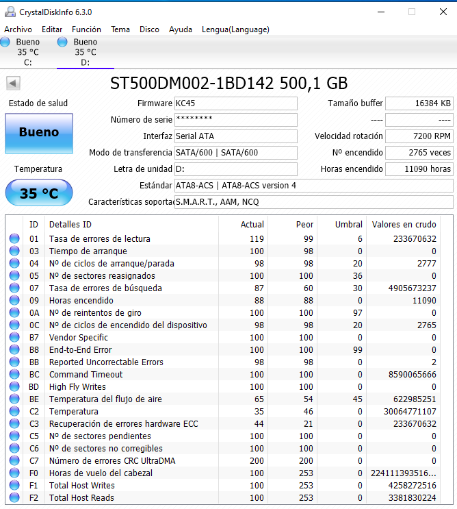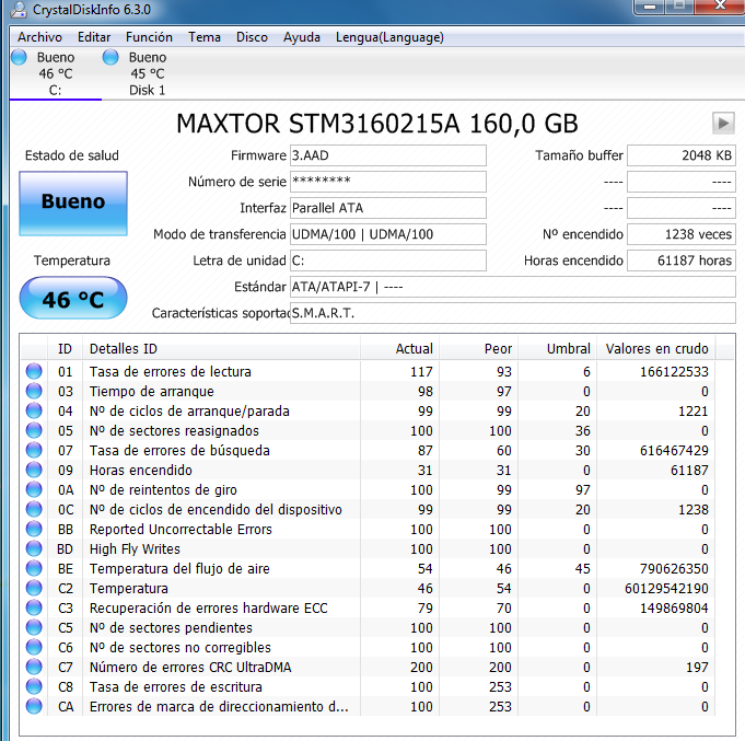 I leave these captures, of several seagates, one with 100,000h to withdraw, it was a 7200.7, then 2 7200.14, one with 61,000h and without any problem, I have Windows 10 pro installed on that hard disk, and it is placed on a fujitsu esprimo p420 computer e85 + I found and it goes great. It has very good health that even supports up to 117 MB / s in download by FTTH 1Gb.