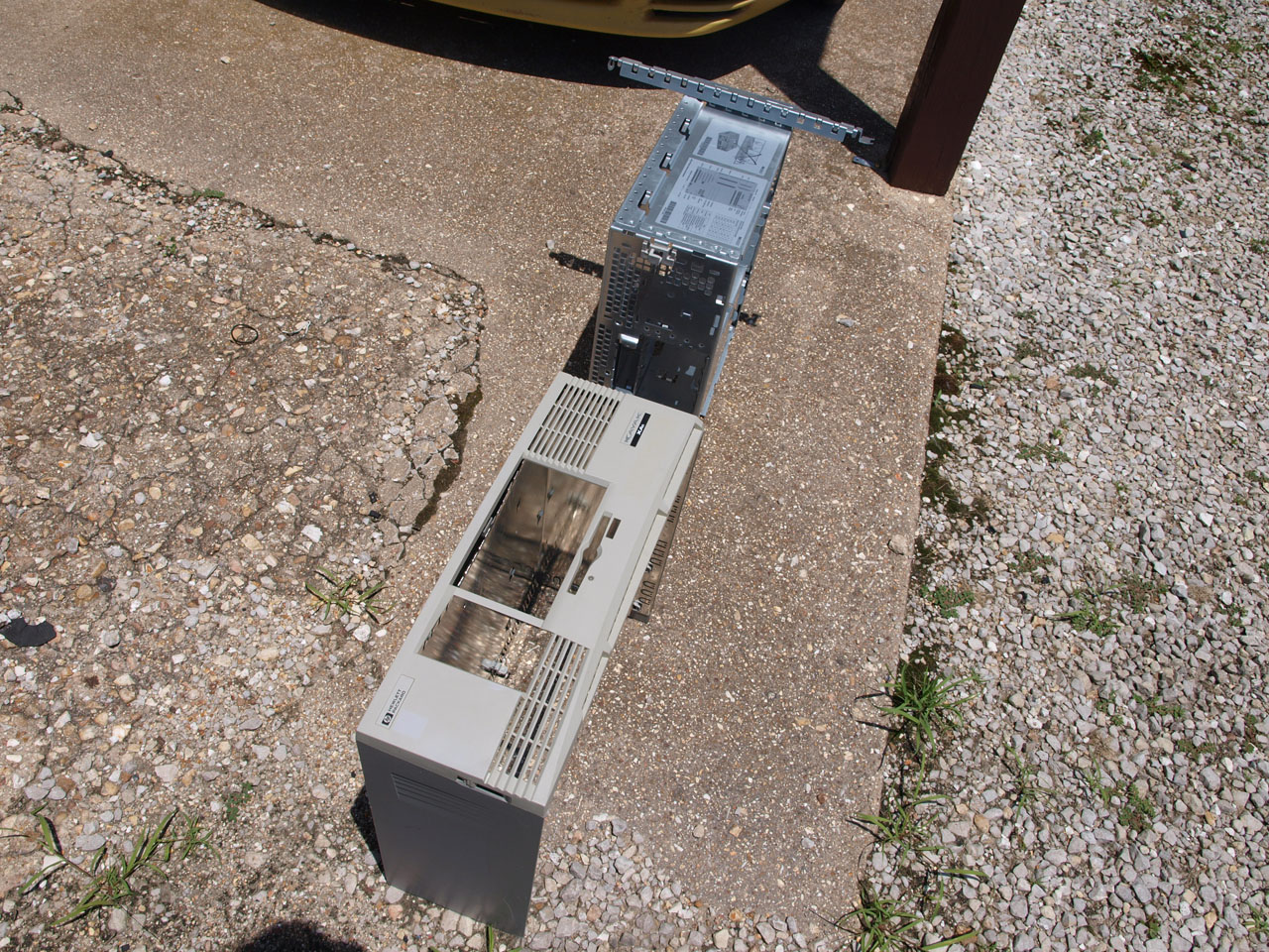 About a month ago I rescued two HP Kayak systems from a recycle bin, one is a XA (D6723T single slot-1) the other is a XAs (D5765T dual slot-1)....I finally got around to messing with one of them. Anyone that knows can figure which one went first!! The dually of course! I've never seen one of these systems before, I didn't even know they existed.