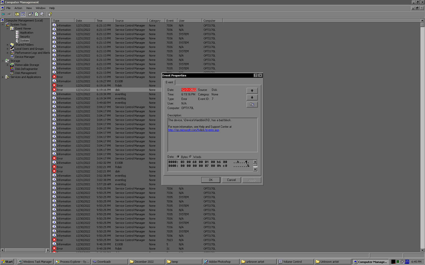 ^ Yes, I have approximately 1% of free space left or less. And most of the data on this HDD is just more or less "essentials" that I use frequently - namely documents, pictures, music, datasheets, manuals, some drivers for older stuff, and a few "classic" movies. My music and pictures library are the largest space consumers by far, though... followed by the classic movies. On that note, I've been thinking I might have to delete one or two of the classic movies to buy me some more time with this HDD. I could also clone and update the HDD to something bigger... and I might just do that, now that this HDD has done 10 years. But IDK, on the other hand I kind of also want to see how long this PC will go for. As mentioned previously, I don't have any data from the HDD's SMART attributes, so I don't know how many hours it has done. Seems like SMART is either locked or corrupt (always was, though - since I found it from day 1.) Funny enough, Event Viewer in Windows has also been reporting warnings with "Bad Blocks" since day 1, too.