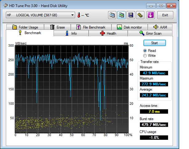 So, I figured I'd go for broke and reconfigure it in RAID0. I also wanted to see if Windows 7 would run on these (one of the guys here is considering using one as his desktop). So, reconfigured and reinstalled.
