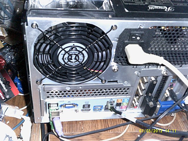 Most of the parts are either purchased used or carryovers from my original desktop back in 1998 or so such as the sound card and mouse while others are just older hardware overclocked to hell and back. The fan guard on the back is salvaged from an old dead rosewill power supply which is inset rather than extended outwards lie your typical fangrill. This way it sits inside of the hole rather than above it to fit flush with the face.