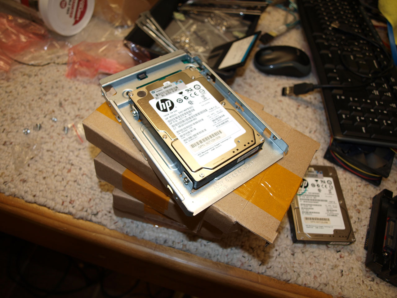 Now for mounting the 2.5" SAS HDD's in non-hotswap bays....this requires some kind of adapters. The best way is Western Digital 'ice trays' that their 2.5" velociraptors used....but I didn't have enough left for this build....and every moron on ebay thinks these are worth $20+ each...so I found the next best thing in the form of a HP SAS tray. They were $7, free ship.