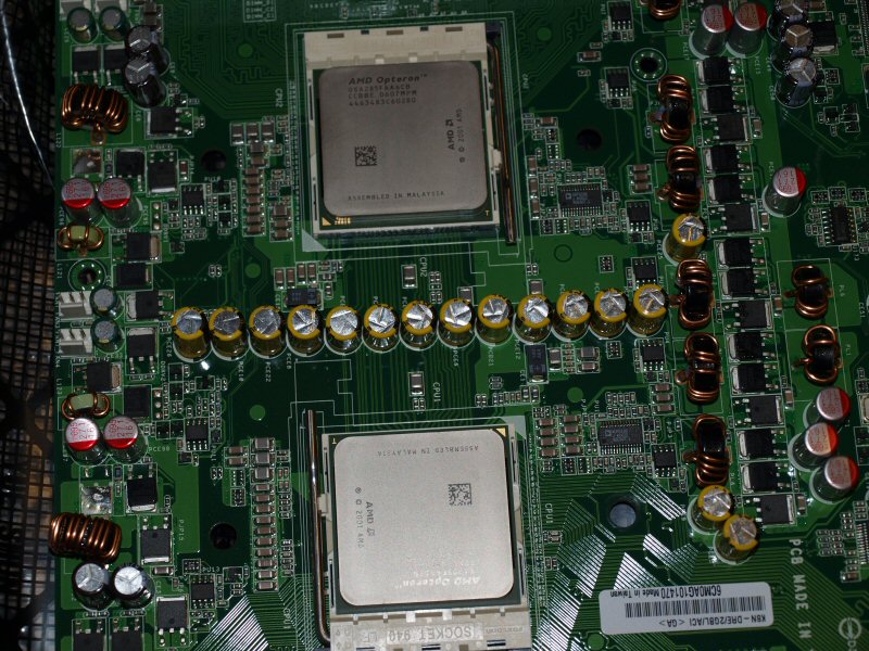 The board was still sealed in the bag (never used or opened), CPU's are Opteron 285's (2.60GHz, dual core), which were in the box with the board in their protective cases. No ram came with it, I just stuck a couple spares in it to test the board and CPU's, which work great. I paid $5.00 for it all, and some other stuff that came with it, which wasn't really worth mentioning (various PSU's, video cards, NIC's, and sound cards). I love going to auctions with computer illiterate locals. The auctioneer was just pointing at boxes, nobody there had a clue what was in them or what any of it really even is. Locals see "auction at bankrupt PC shop", they think they'll get a bargain on whole computers, but haven't the foggiest clue what a box of parts are worth.... They'll bid some worthless beat up but complete Dell system to some insanely high price, but won't bid 10 bucks on a box with 2000 bucks worth of parts in it, its so great!! I rummage through as many as I could before the bidding started, so I'd have a vague idea if there was anything worth buying....