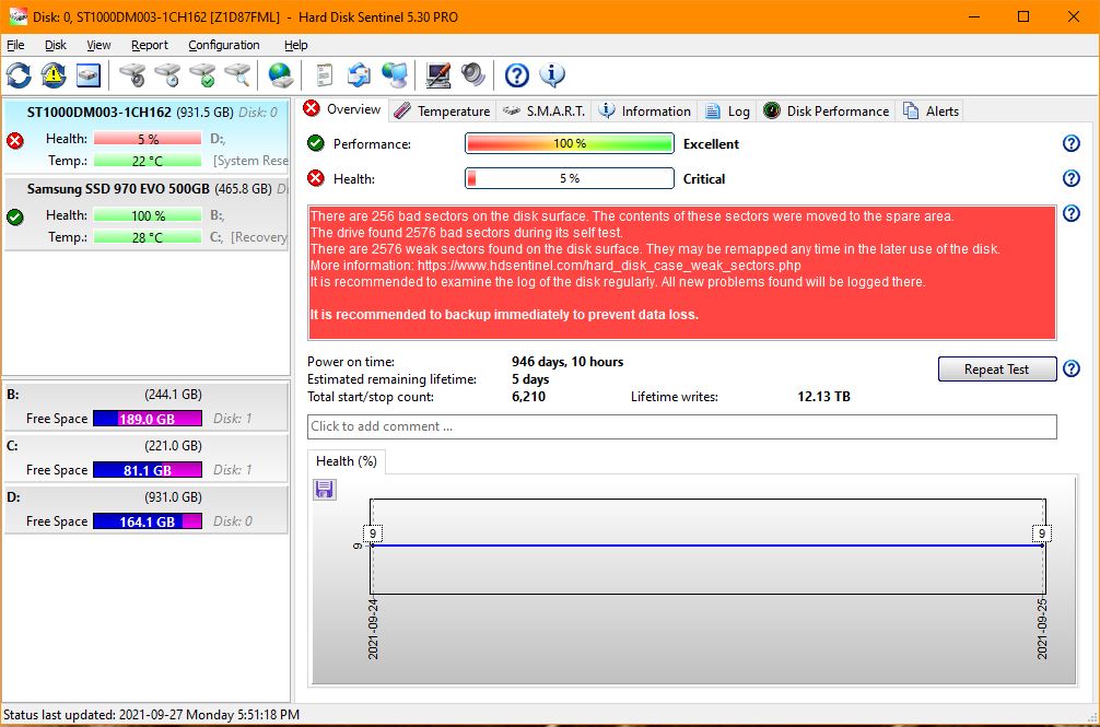 This leads to my question. Why on earth would the RAID controller never alert me to such an unhealthy disk? This disk has obviously been going out for a long time and it was just after the second disk started going bad that I found the problem. Trying to view the SMART data on the PC when the drive is in RAID just gives "not supported".