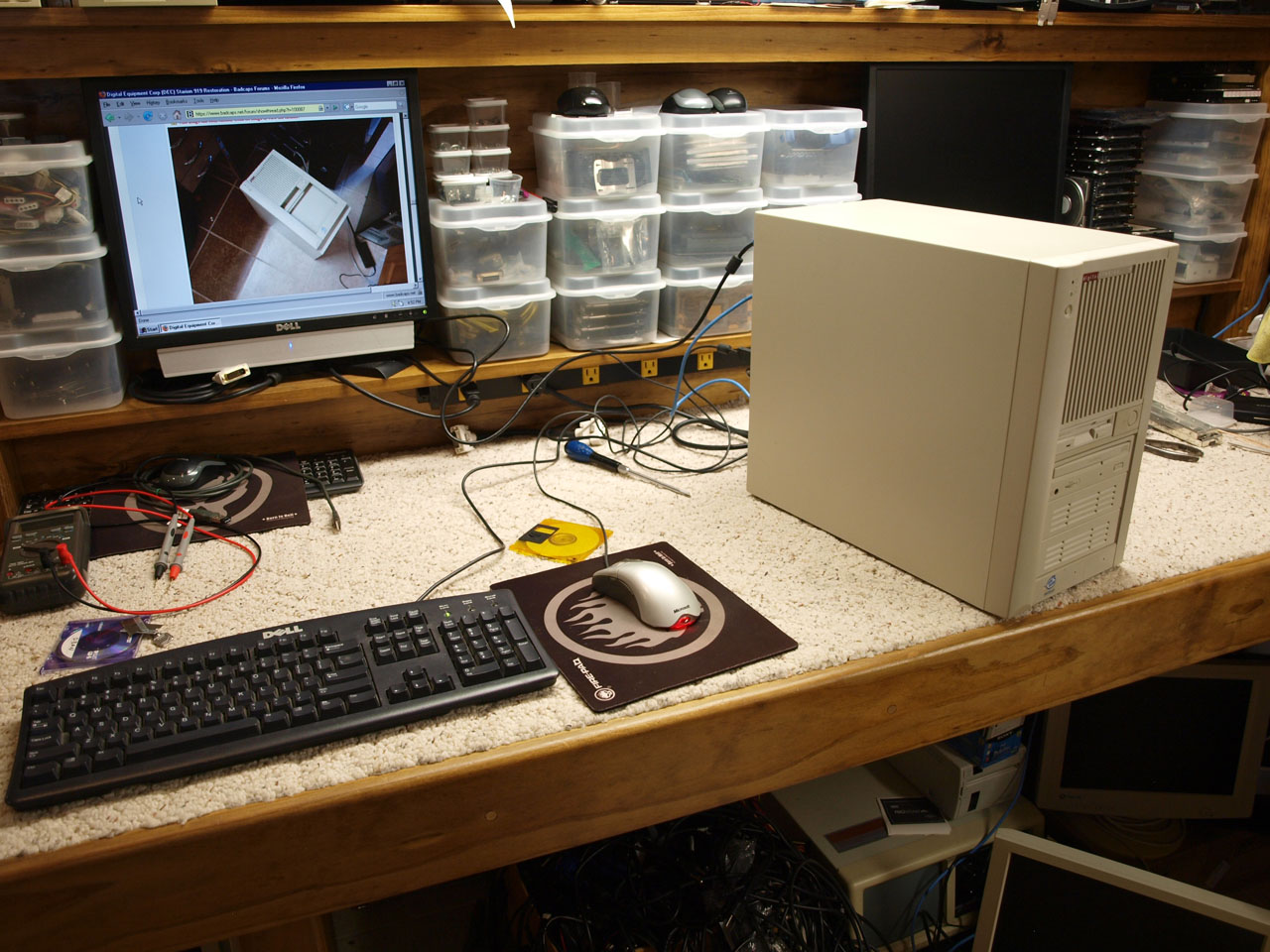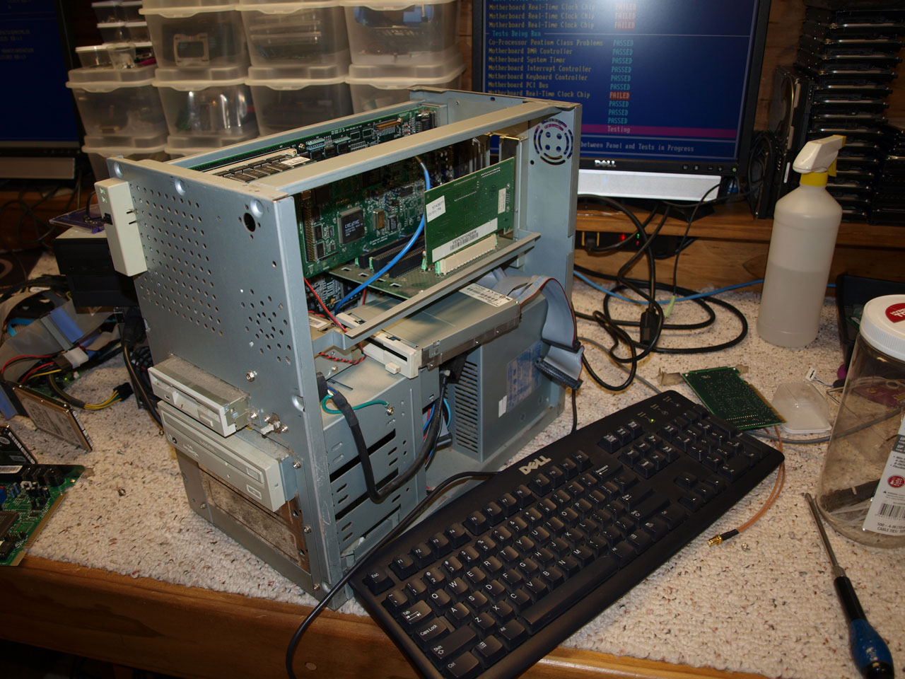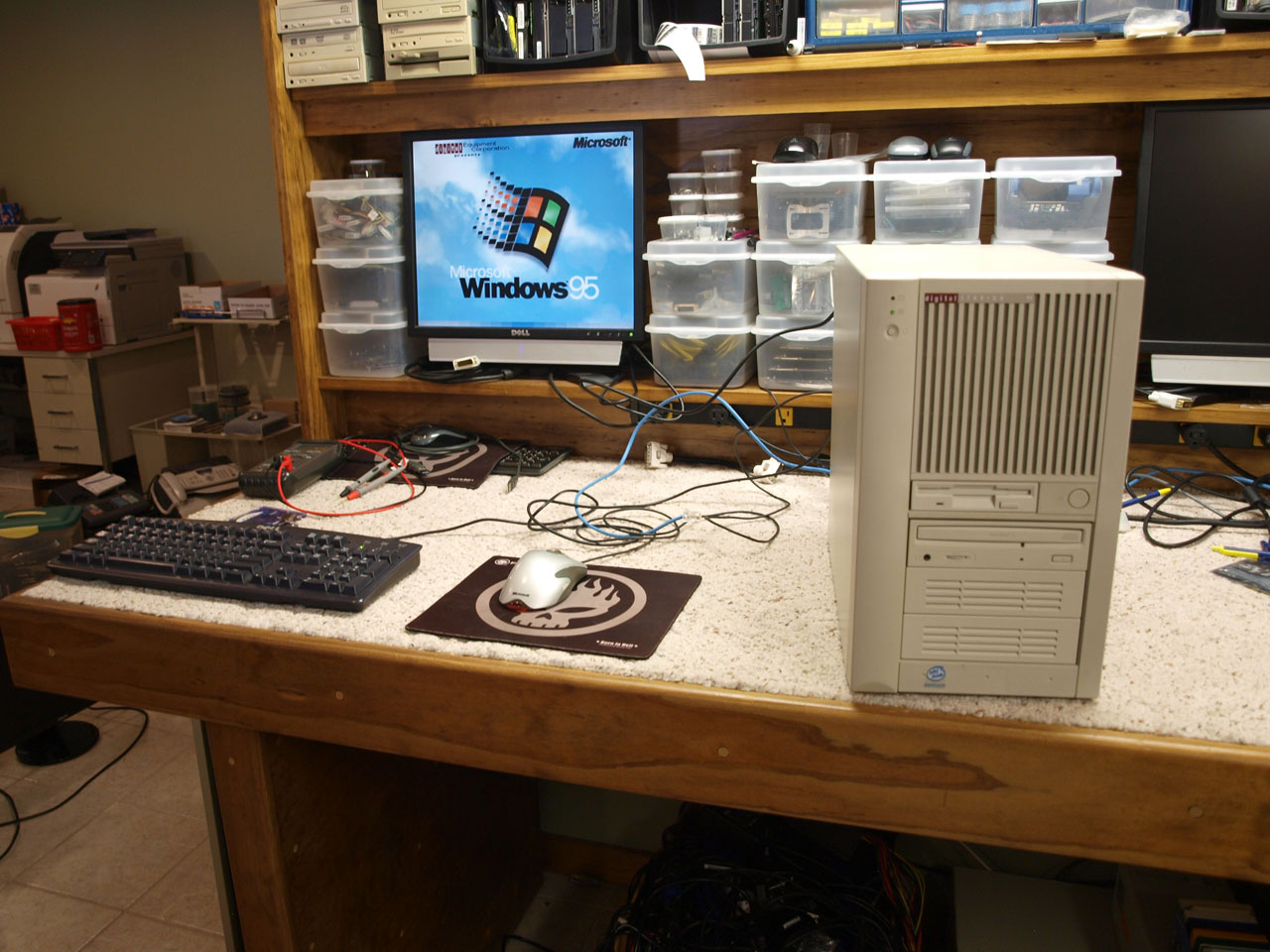 Two issues I found that were booting killers for it; the Dallas RTC is bad (won't hold BIOS settings, but will keep the time/date...go figure) and the 1.2gb Quantum Fireball (furball) is bad (spins up, seems ok....and then out of the blue will spin down). The floppy is flaky (struggling to read; even after cleaning), and the 4x Mitsumi cdrom has not been tested. The system is otherwise functional. It was originally a Pentium classic @ 133MHz (as per the sub-model # of 5133). Someone tossed a 233MMX in it, but its limited to a multiplier of 3x; so only runs @ 200MHz. It had 8mb onboard RAM, I added a couple 64mb modules I had on hand to give it 128mb. It's weird, it shows the onboard 8mb memory, but when you add the modules, the POST count and the testing software only sees the modules.... Not a big deal really, just kind of strange.