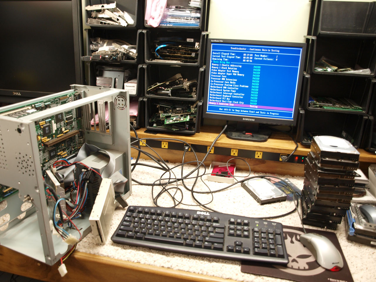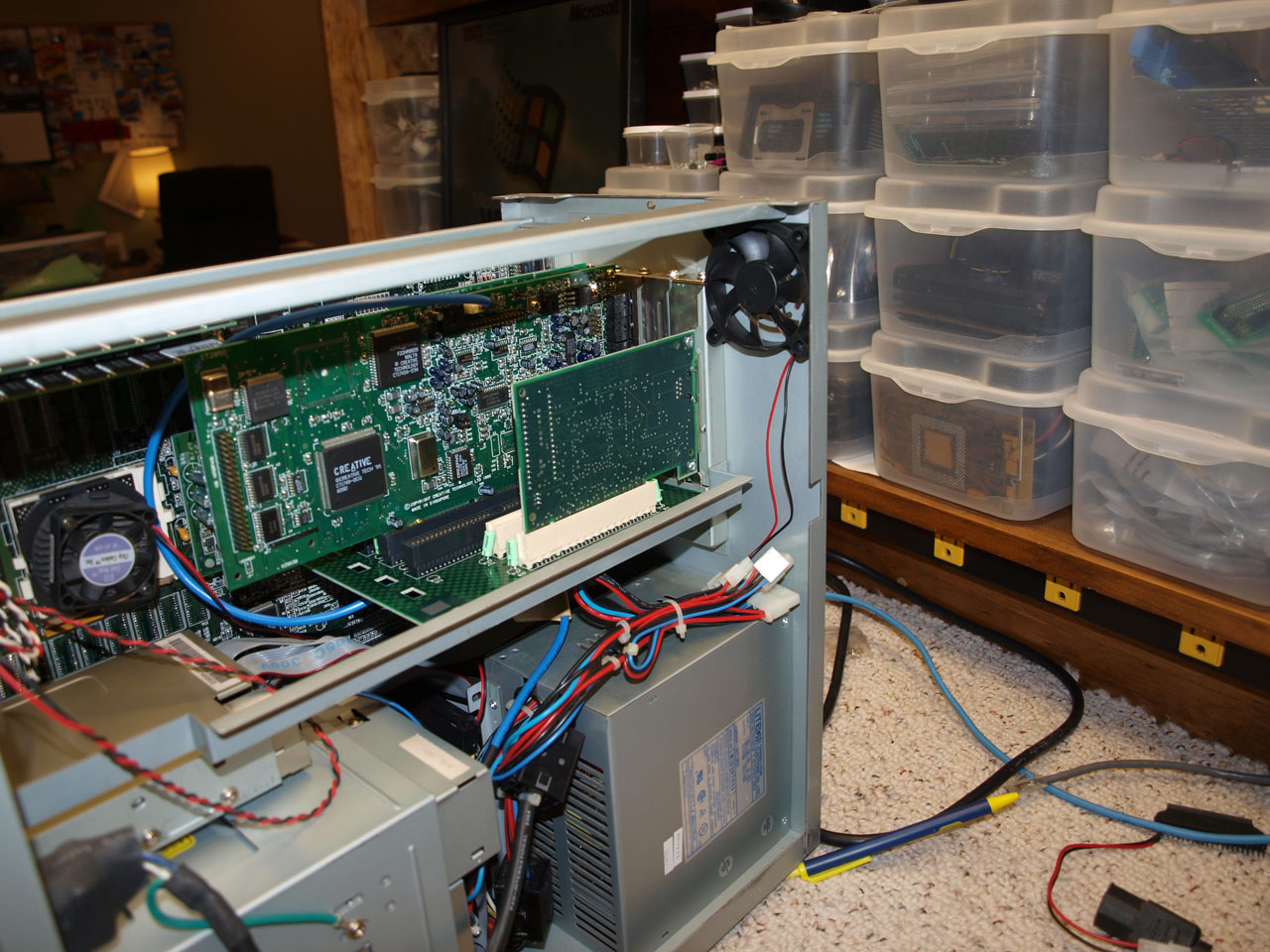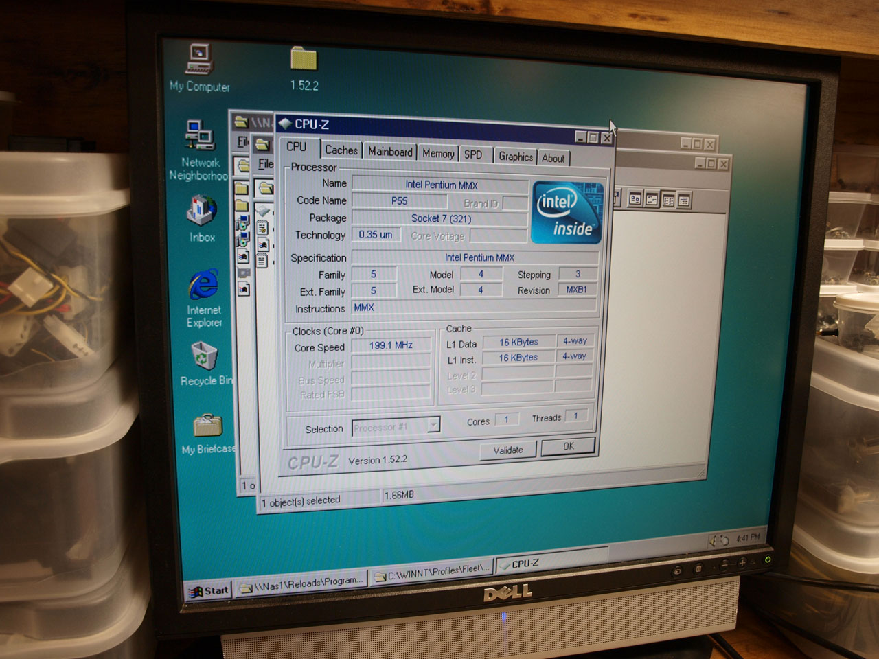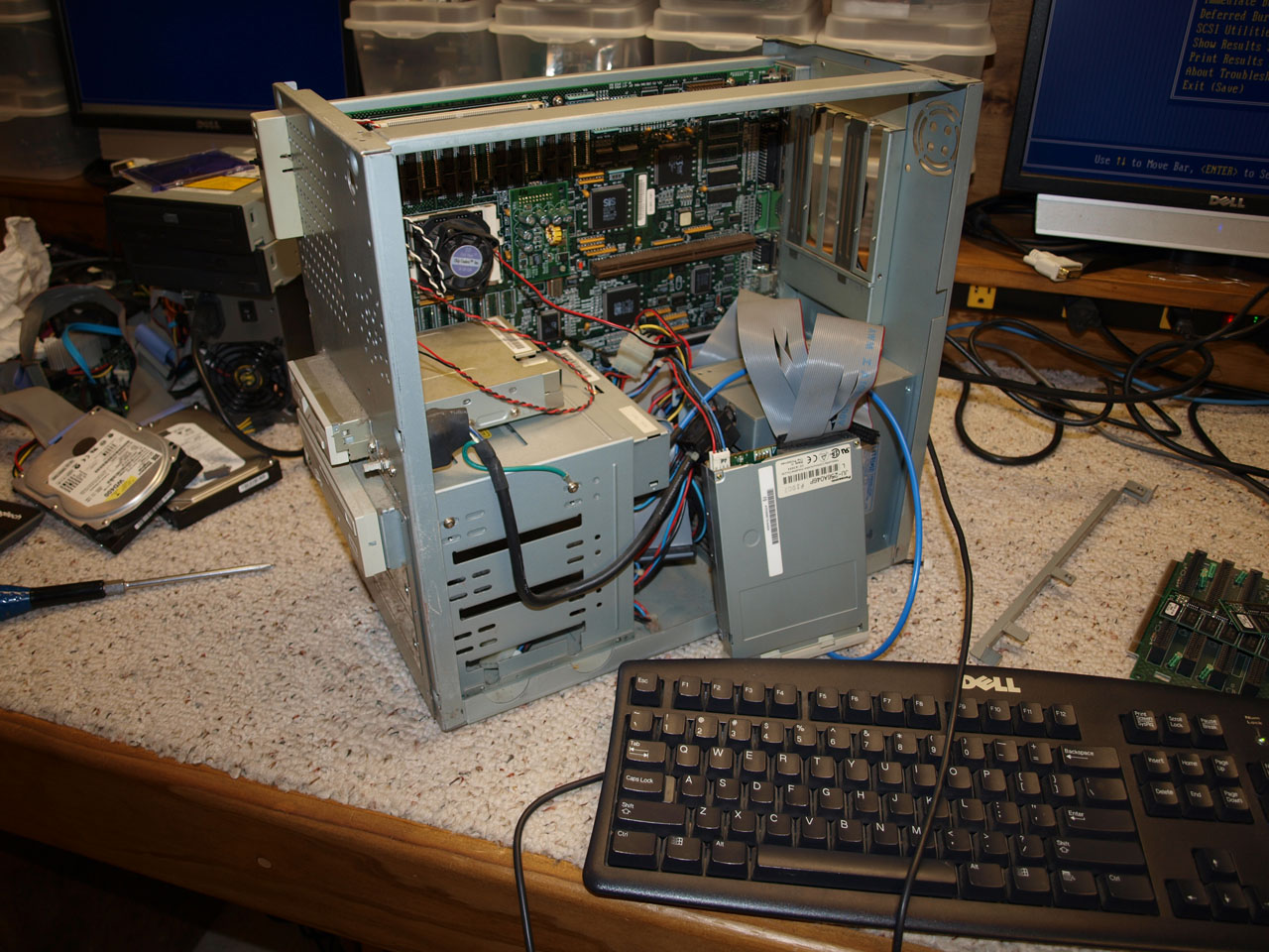 Two issues I found that were booting killers for it; the Dallas RTC is bad (won't hold BIOS settings, but will keep the time/date...go figure) and the 1.2gb Quantum Fireball (furball) is bad (spins up, seems ok....and then out of the blue will spin down). The floppy is flaky (struggling to read; even after cleaning), and the 4x Mitsumi cdrom has not been tested. The system is otherwise functional. It was originally a Pentium classic @ 133MHz (as per the sub-model # of 5133). Someone tossed a 233MMX in it, but its limited to a multiplier of 3x; so only runs @ 200MHz. It had 8mb onboard RAM, I added a couple 64mb modules I had on hand to give it 128mb. It's weird, it shows the onboard 8mb memory, but when you add the modules, the POST count and the testing software only sees the modules.... Not a big deal really, just kind of strange.