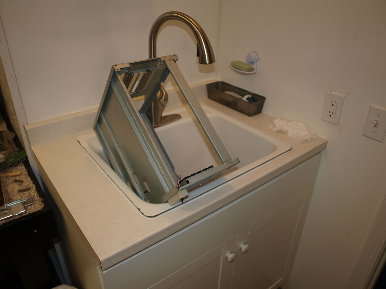 Apart and time to wash the case...the first PC case to be washed in the new sink. I did scratch it in a couple places....but that's the beauty of porcelain covered cast iron.....a little scouring powder, scratches come right out.....good as new!