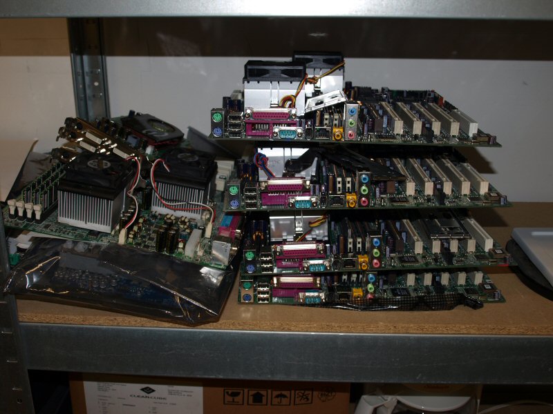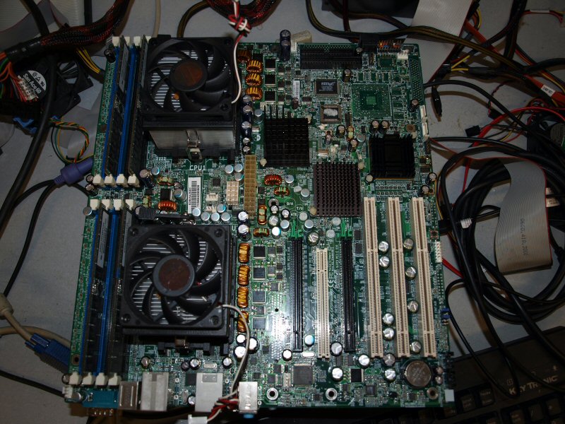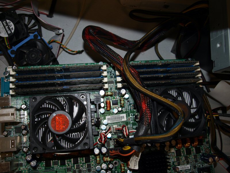 Where'd all those come from? One of the bonuses of the RAM, it came with motherboards, CPU's, heatsink/fans, and IO shields. The RAM by itself was worth what I paid for it by far (would have cost me 1600 bucks if I had to buy it new: http://ec.transcendusa.com/product/I...=TS256MDR72V4L ), was nice to get a bunch of extras with it. I'll be reselling the 4 spare boards, CPU's, and so on. They're Tyan K8W (S2885) motherboards with Opteron 250 CPU's.