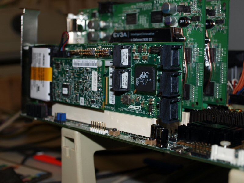 The only part of this project that cost a lot was the case (was $375 shipped), but came with the 865W PSU and SAS backplane, so bang for buck, it wasn't really that bad. That's the disadvantage of an eATX board, not many cases out there can take one.....but the way I see it is this, the case will be around for a LONG time. If this system dies or I want to upgrade, I can reuse it until the ATX form factor itself is obsolete, and that won't be for a long time. All the rest of the parts in this system were other people's "trash" and other bargains I ran into. Not taking the case into account, I probably have $250~$300 in this so far. Not a bad price for a quad core system with 16gb of RAM in it, with SLI video cards.....built out of IT-grade components not cheap end-user trash. I still have to buy hard drives, but I still haven't decided which way I'm going yet.