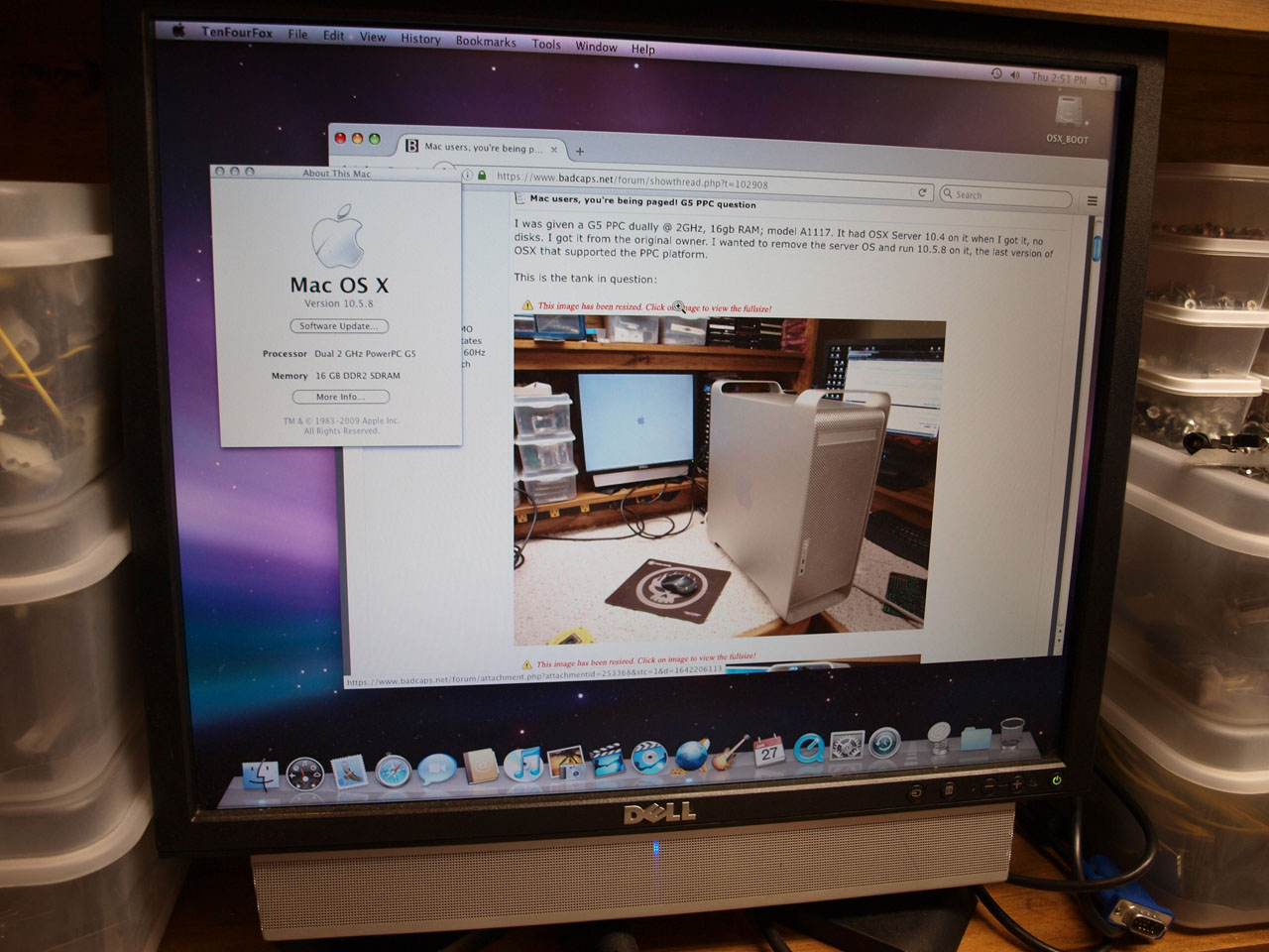 I was given a G5 PPC dually @ 2GHz, 16gb RAM; model A1117. It had OSX Server 10.4 on it when I got it, no disks. I got it from the original owner. I wanted to remove the server OS and run 10.5.8 on it, the last version of OSX that supported the PPC platform.