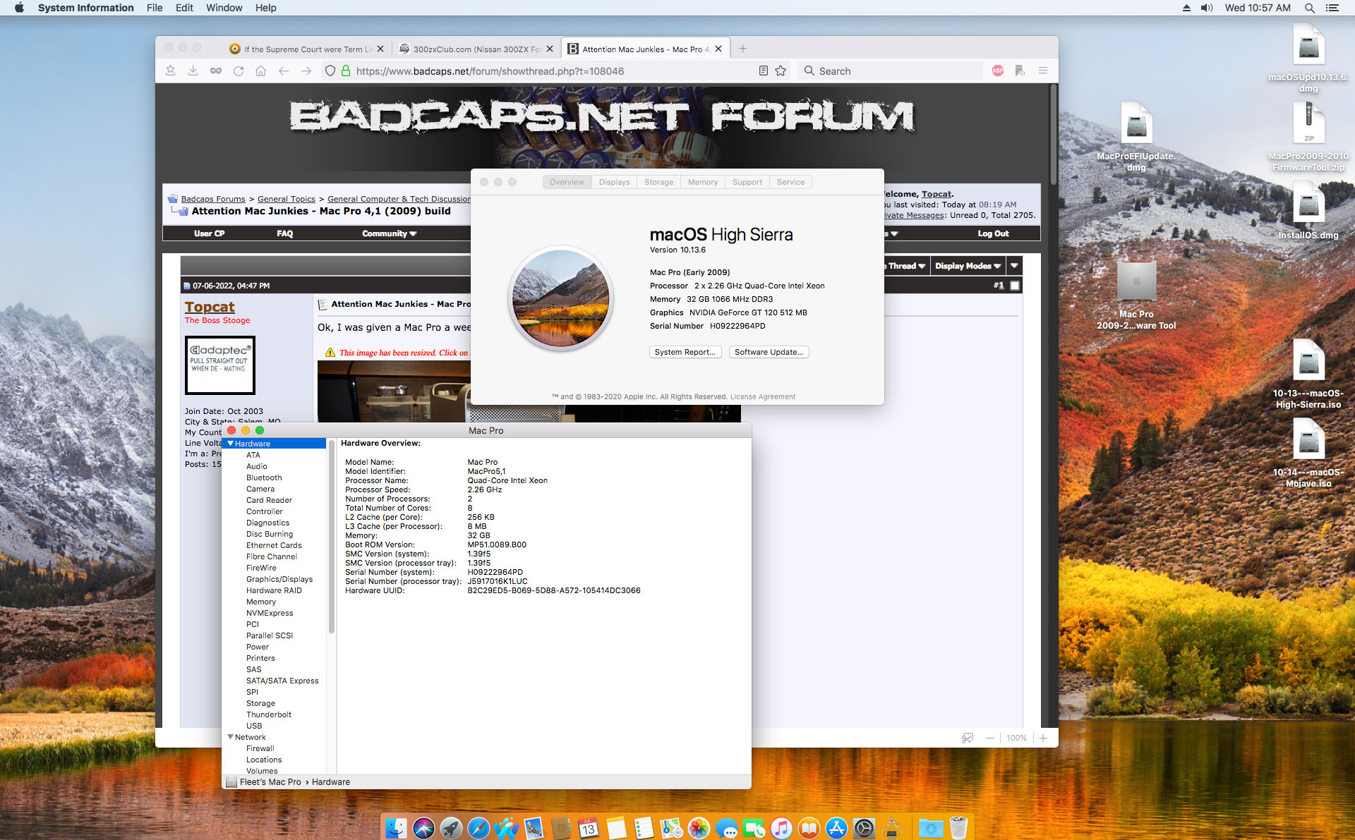 Being it's now a 5,1 by firmware (hardware-wise the 4,1 and 5,1 are identical), the 'High Sierra' test was also successful. The final conquest for this hardware-wise is the dual CPU card.....and then dual booting it.