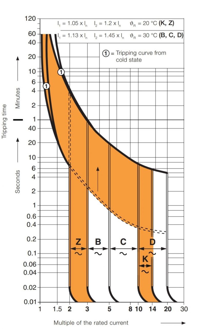 I looked at mini circuit breakers MCB DIN-rail and they all seem to be about protecting wiring. So they are looking a bit slow and extreme in the magnetic trip part of the curve.
