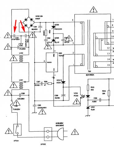 Today I had the idea of hooking it up to my non-working digital TV tuner PSU to see if I could spot anything obviously wrong on the outputs (yeah, unlikely, but it's all interesting, right?)