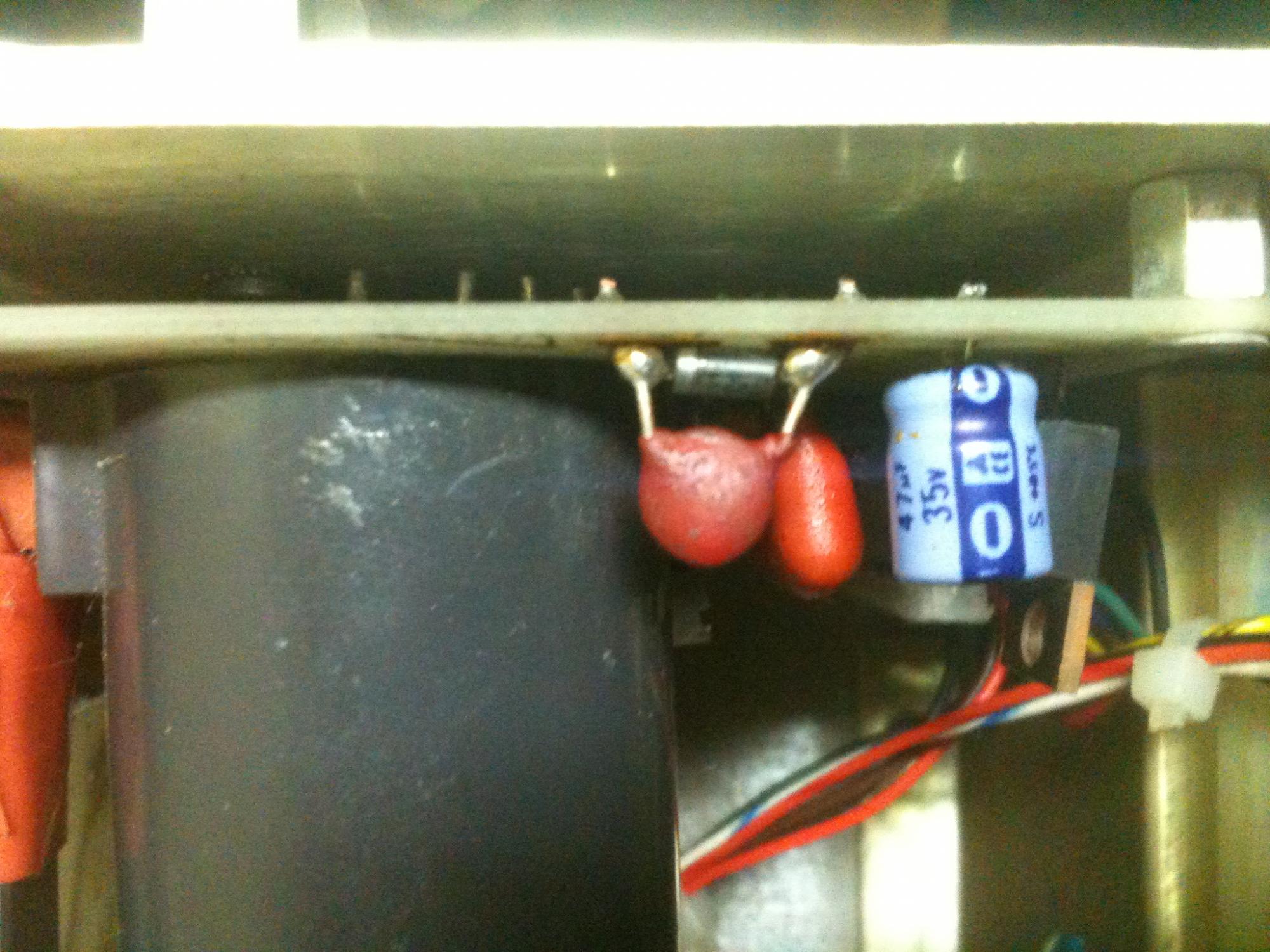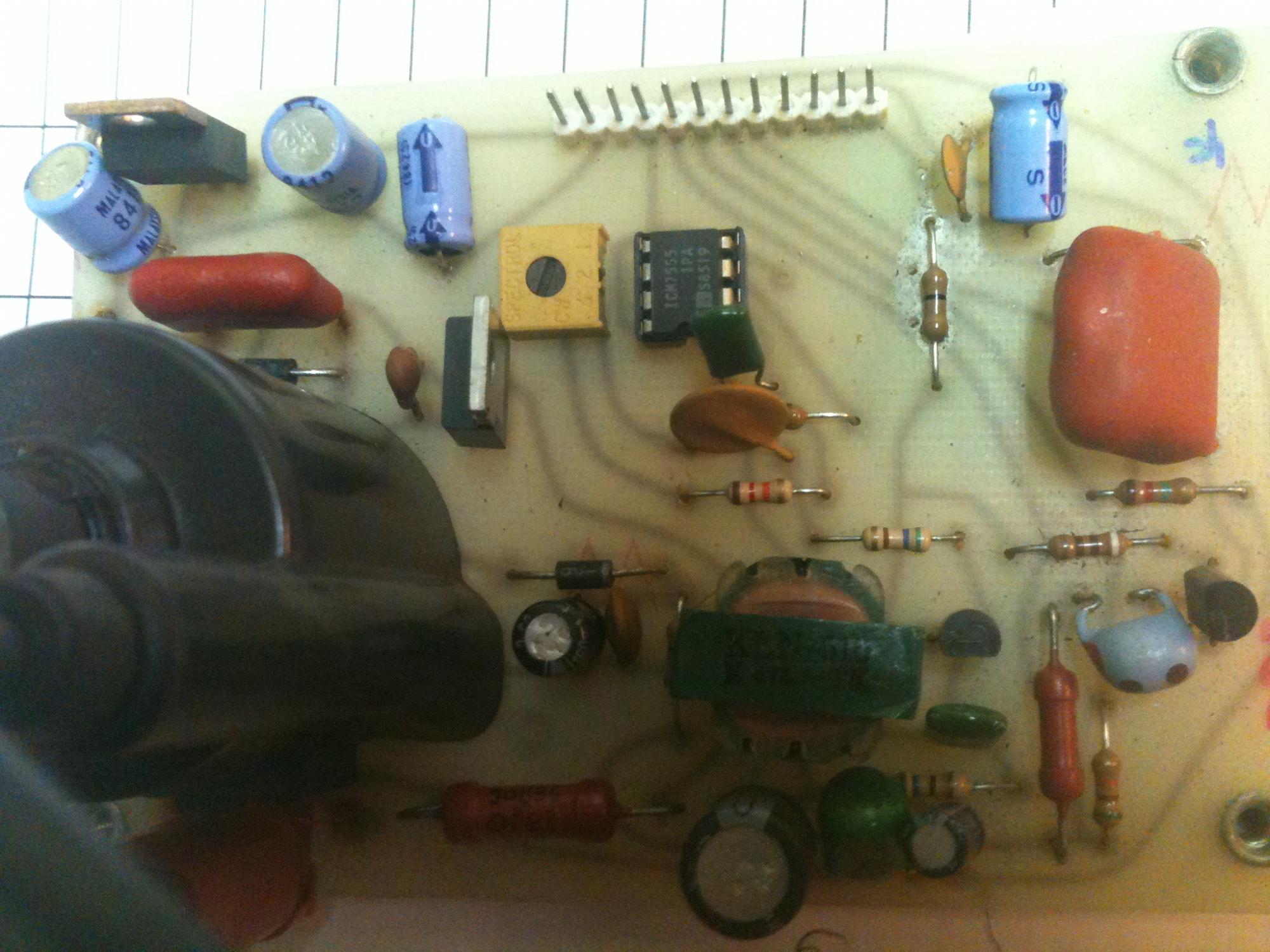 in the picture the cap is right next to the flyback and cap is soldered to a diode you will also see the transistor thats the 7915. If the sweep board is removed the 7915 output -15 works input pin is 30.7 does that sound right and that red cap is cool to the touch im thinking there is a short on the sweep board do you agree red disc cap reads like this 75f does this site have a chatroom i'm sending you a pm for the server. 220k