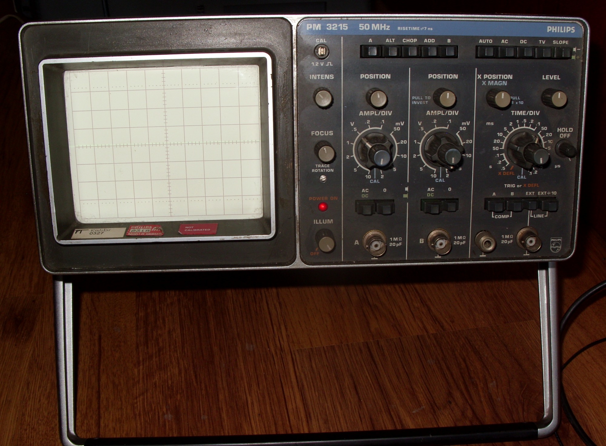 Snatched this one for $90 including postage. It's a Philips PM3215 dual 50MHz scope. A steal at this price. It can do differential measurements, which my dual 10MHz Panasonic can't, so i can probe live circuits now. I'll still be using that inverter and battery for safety's sake, but this will come in handy. As far as i see it's also got delayed sweep.