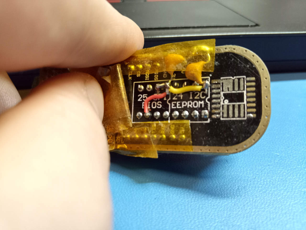 Not covered on that eevblog page: the WP/HOLD pins (pins 3 and 7) must be held high via pull-up resistors, but on CH341A dongles, they are directly connected to 3.3V DC (continuity with pin 8). It is advisable to cut these two connections, to the WP and HOLD pins, and jump the cuts using pull-up resistors instead. A value between 1k to 10k (ohms) should be fine.