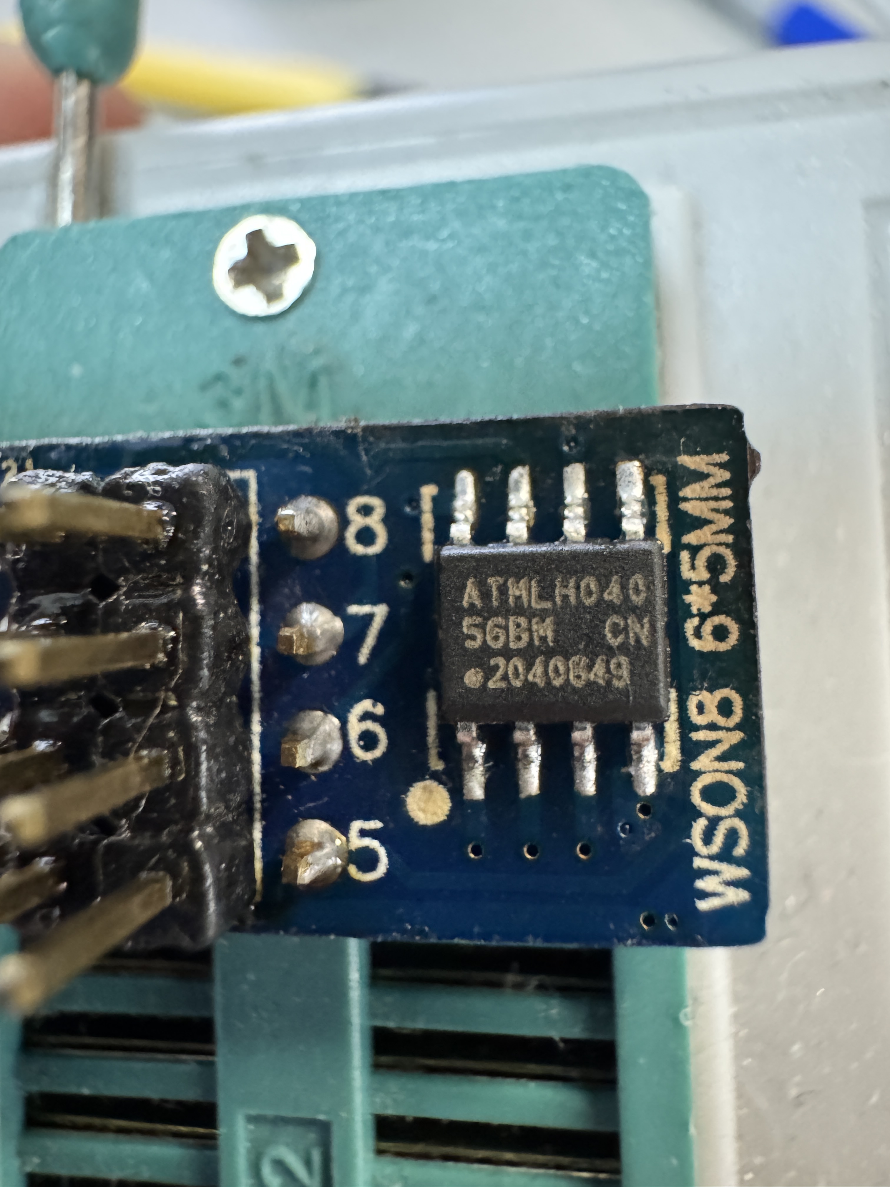 This is a shot in the dark, but I was just using my RT809H programmer and it got stuck in a certain state so I power cycled it. Now, the device LED just flashes quickly and does not connect to the software. I've tried to update the BIOS of it and it fails. I went so far as to remove the ROM from the programmer itself but it's some weird chip (I believe ATMEL, but I can't find any datasheet on it) so I've been unable to read the BIN from it w/ my other programmer. Chip has ATMLHC4C56BM CN written on it (I think). I'll upload an image. I have the programmer's BIN ready to program it manually. Anyone else have any idea on how to get this working? I'd contact iFix themselves but everything is in Chinese and I don't have WeChat.