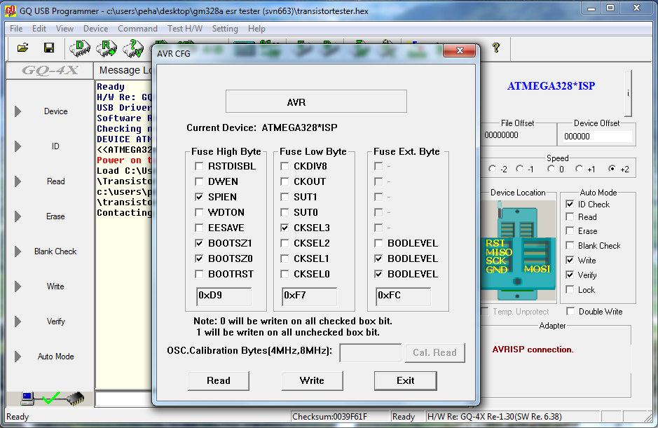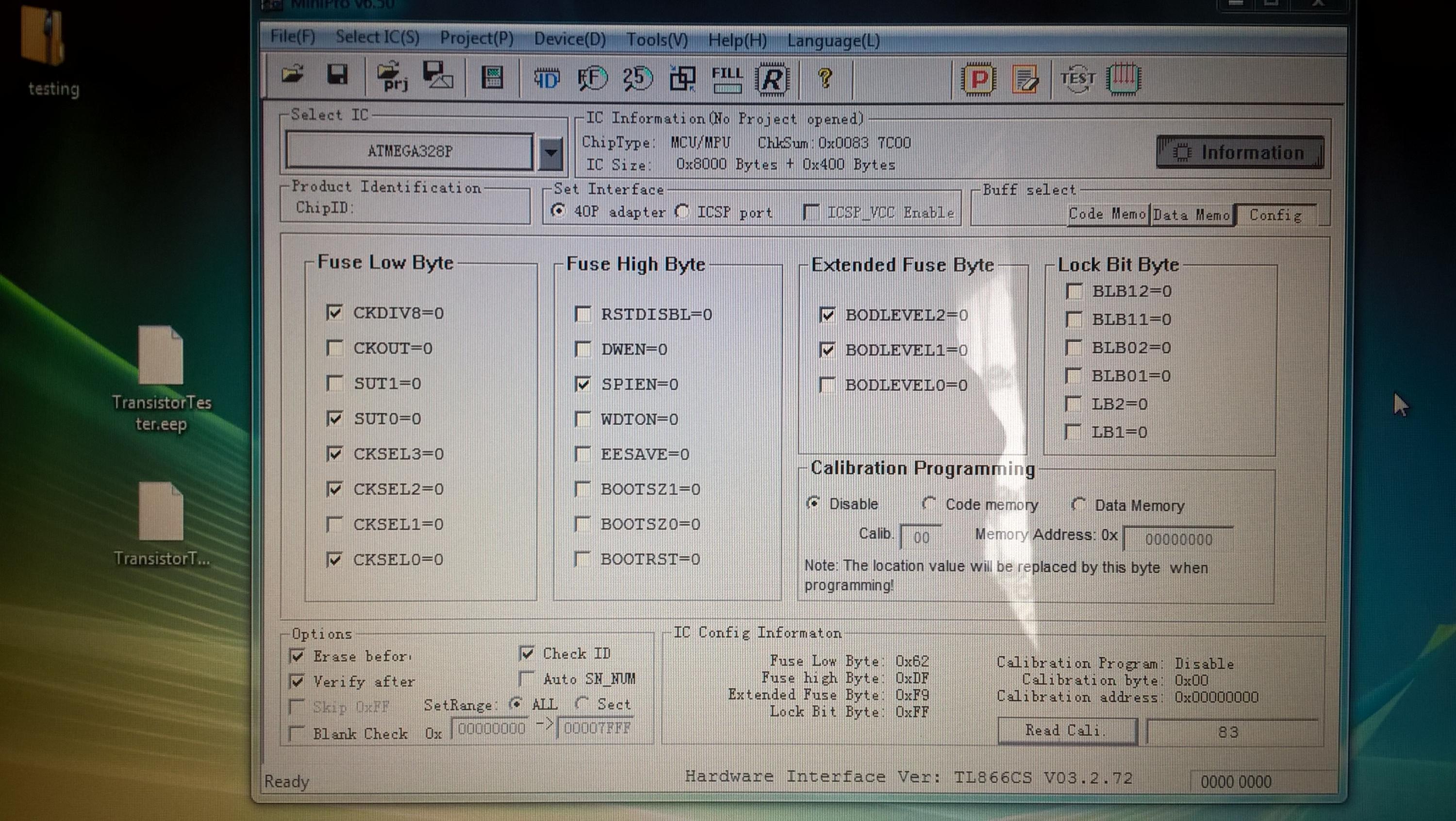 with all the settings as your instructions and tried the two diffrent zip files still no good one zip just blank screen other zip slightly diffrent scrolling data on screen in my picture of the fuses screen theres one section lock bit byte? ive got nothing ticked there.Last edited by vinceroger69; 07-12-2016, 09:50 AM.Comment