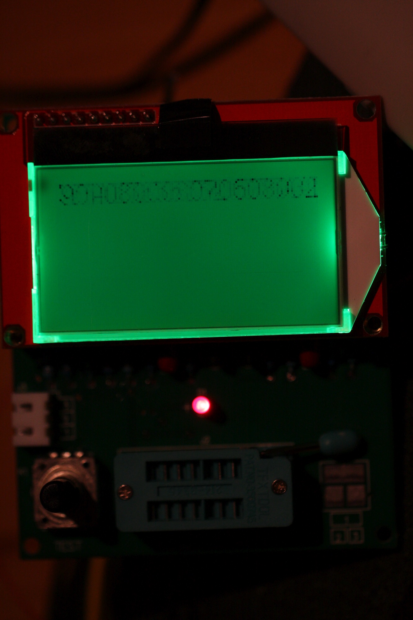 I've got the same as vinceroger69, with the firmware from this post I get scrolling characters on the screen when I power on.