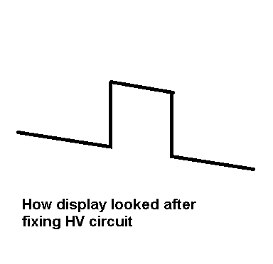 The HV is made from a transistor based oscillator and transformer and nothing was visibly blown or overheated. Without an actual HV probe\meter, I tried waving my scope probe over transformer T101 and got nothing, and probing the primary winding showed only a stable 15v DC. At one point I also waved around a neon globe on a stick, to no avail. So it looks like the HV oscillator is well and truly dead. So much for "The shop I took it to said the HV is working"