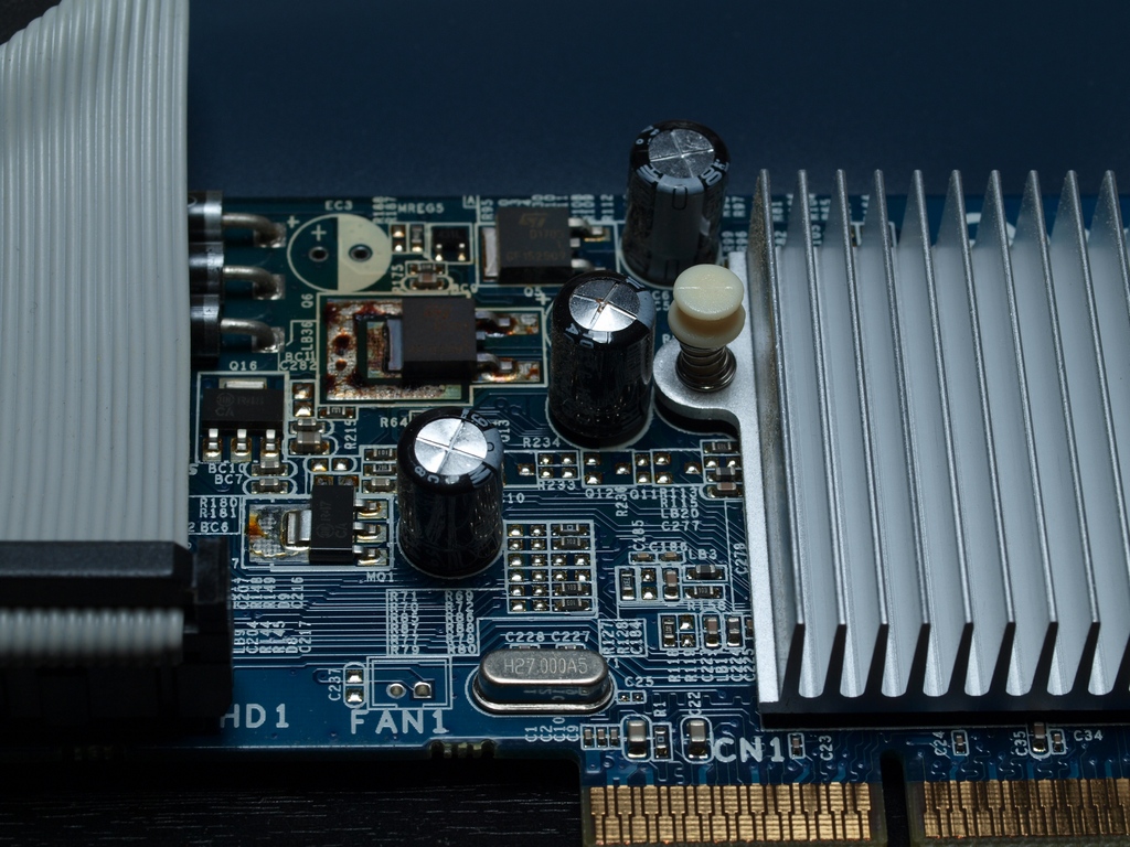 I finally pulled out the Gigabyte Nvidia FX5200 video card and checked the electrolytic caps. The 1000uF 6.3V with the swollen top had an ESR of 13 ohms.