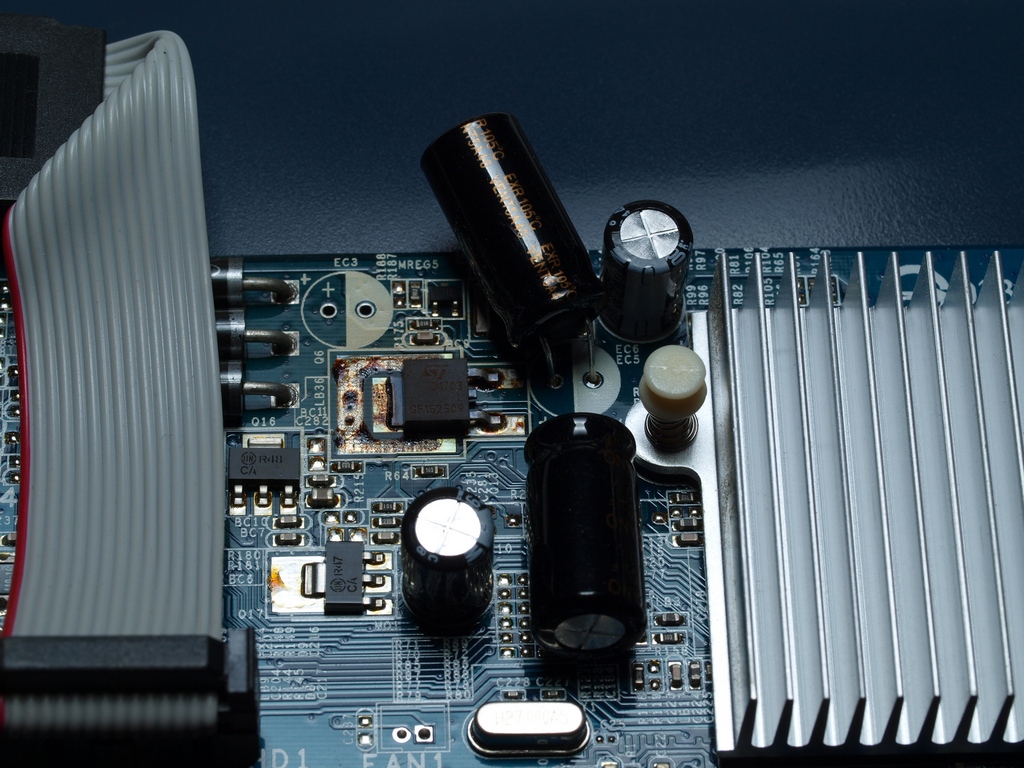The others measured 0.03 ohms each so I left them alone.I replaced it with a pair of low ESR 1500uF 10V caps I had (using the existing cap's solder pads + two spare pads in parallel with it), and suddenly Google Earth is perfectly stable again. The weird thing is that the video card was working OK with all other programs.