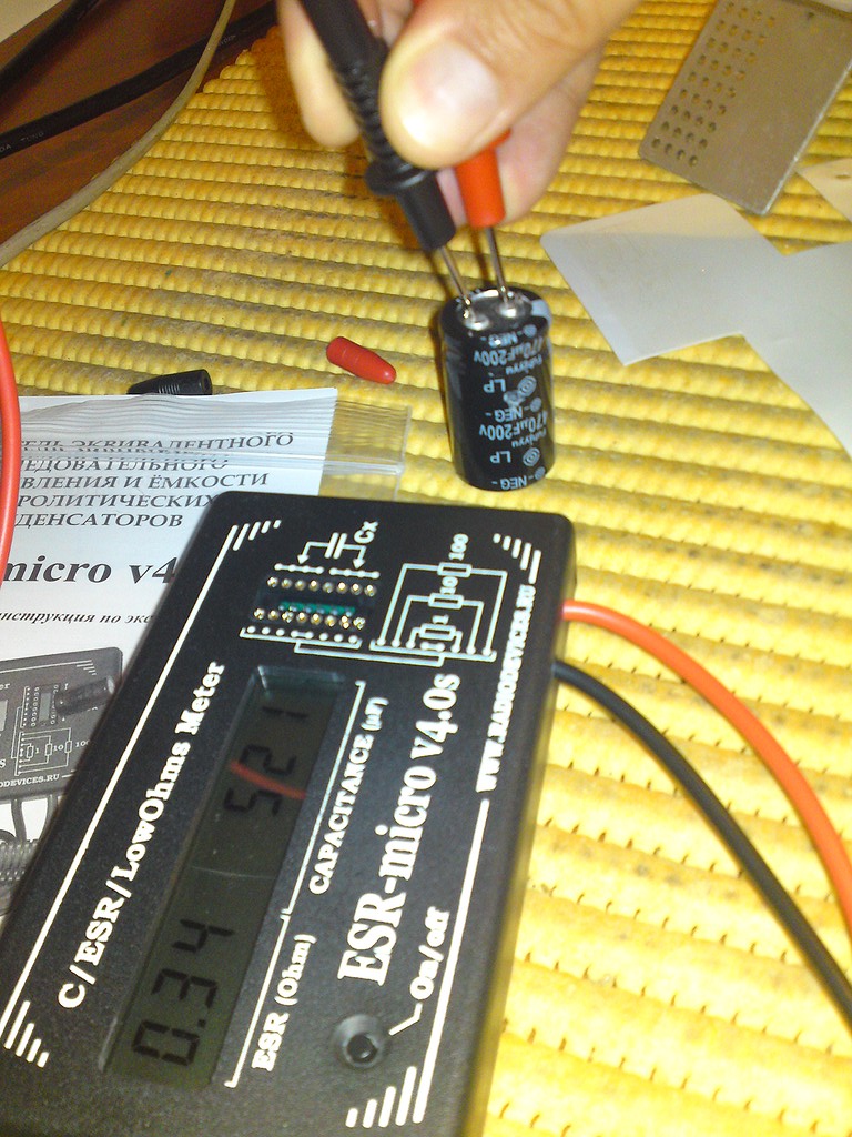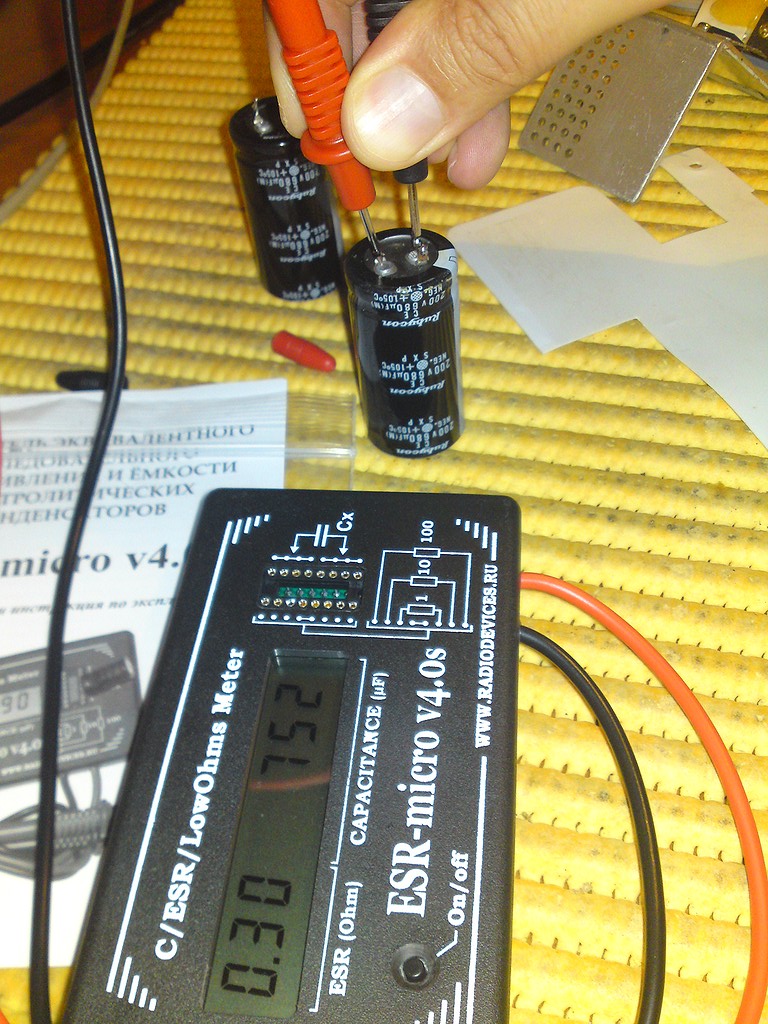 Anyway, the ESR meter does a good approximation of the ESR (it's not the actual ESR of a capacitor in the real sense of the term) and as a plus it gives a good approximation of the capacitance.