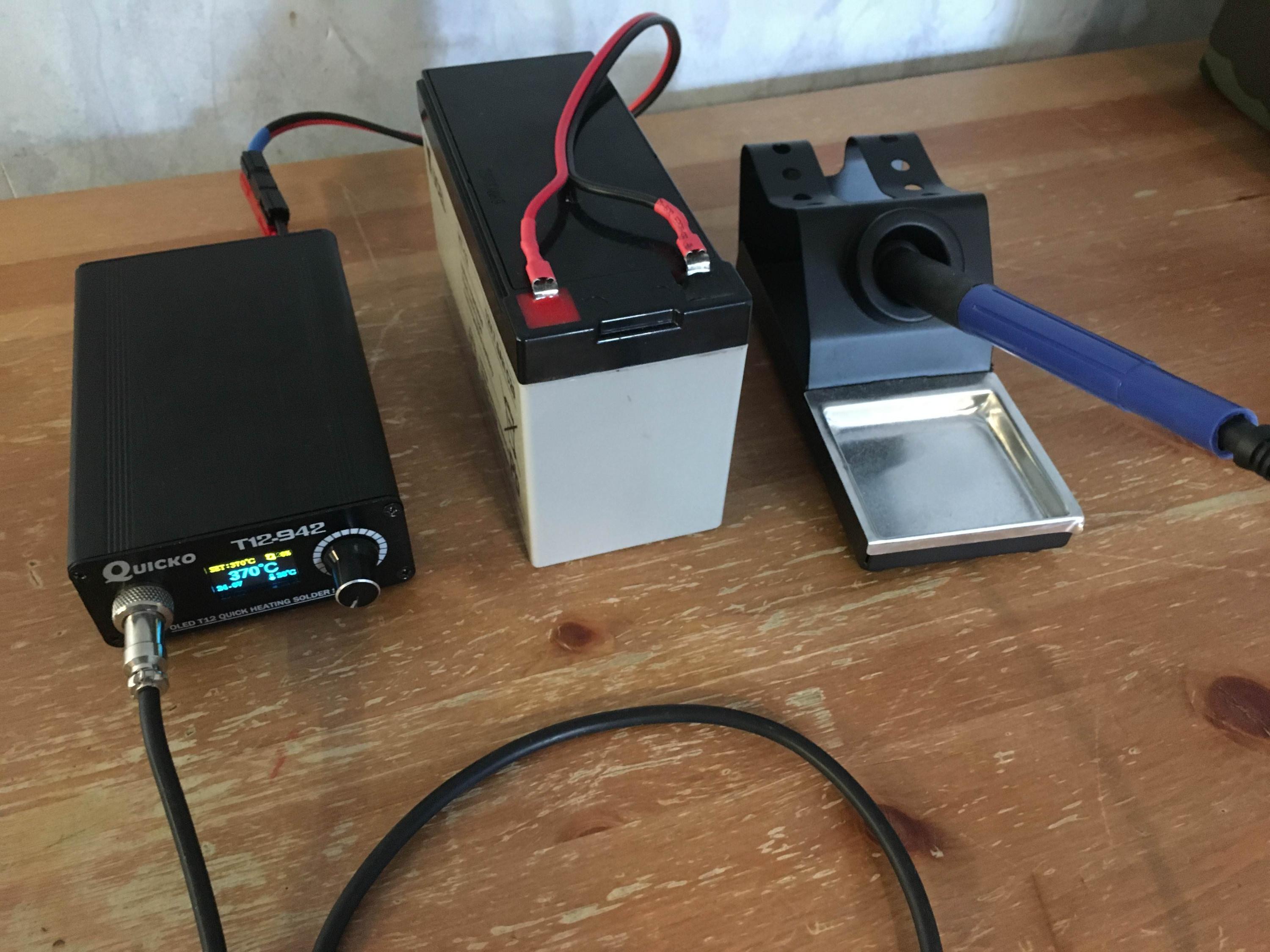I did like this T12 with boost-converter and 12V gel-cell bd139 built. It seems to need 24VDC at 3A max. for a few seconds on warm up. Or XT60 RC hobby connector or cig lighter for input.