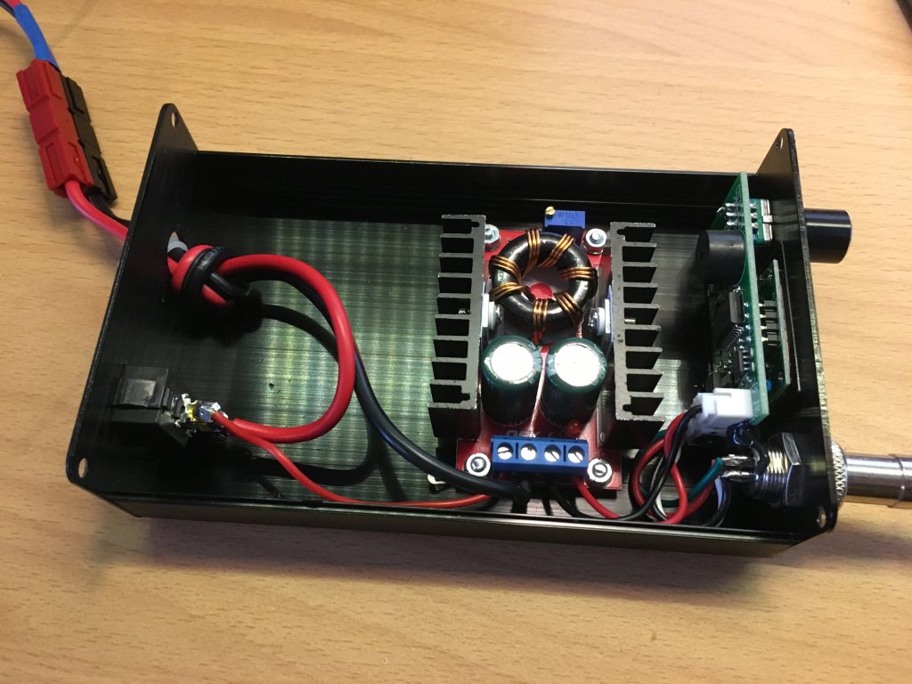 It seems to need 24VDC at 3A max. for a few seconds on warm up. Or XT60 RC hobby connector or cig lighter for input.