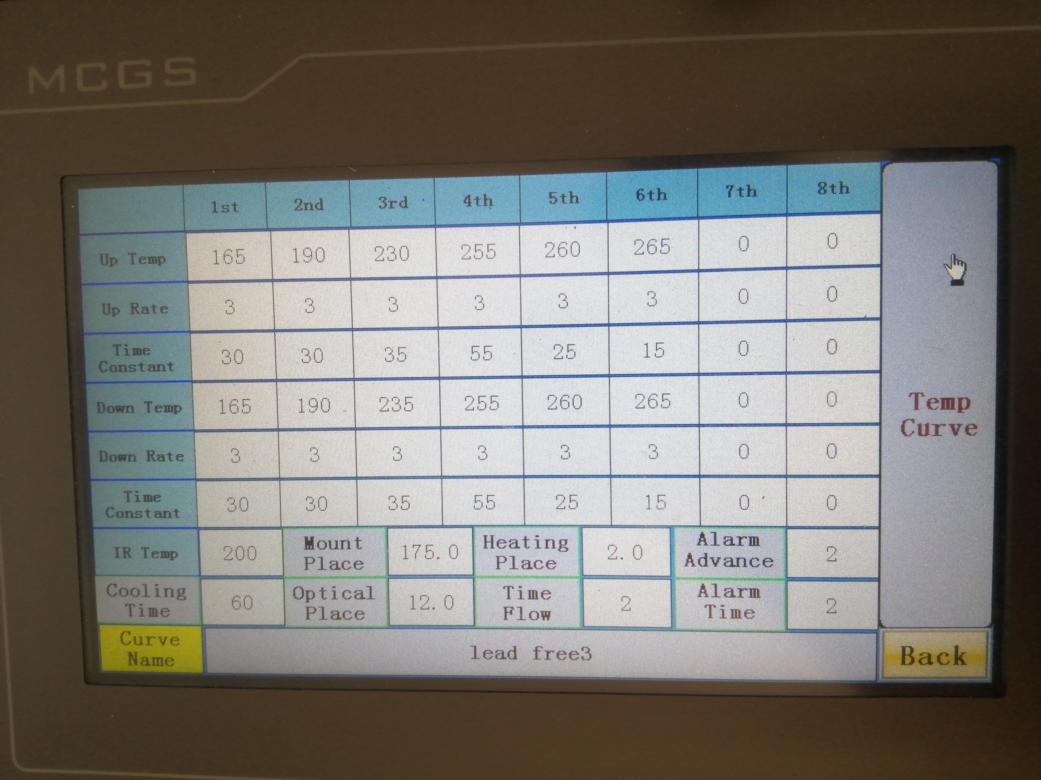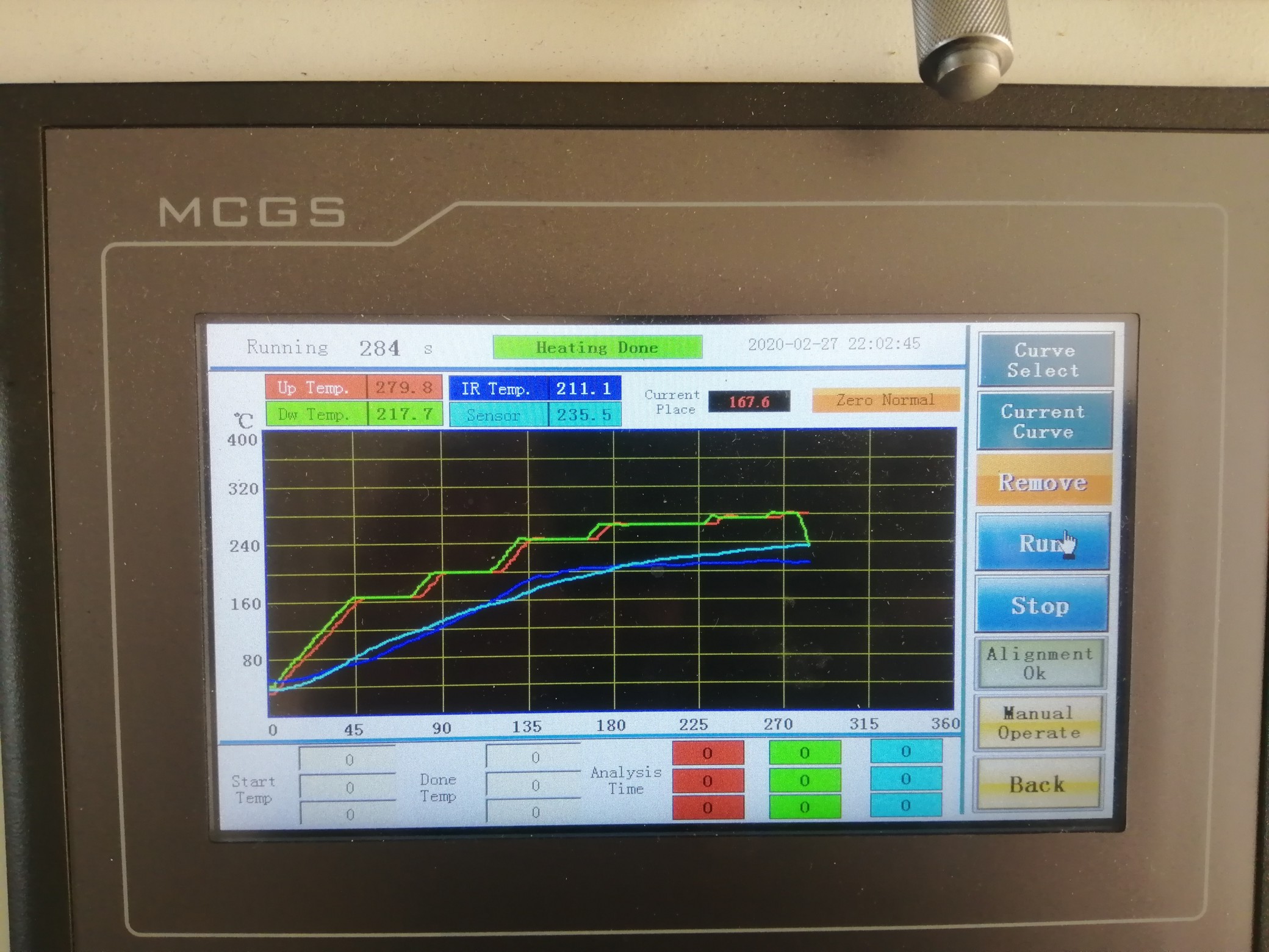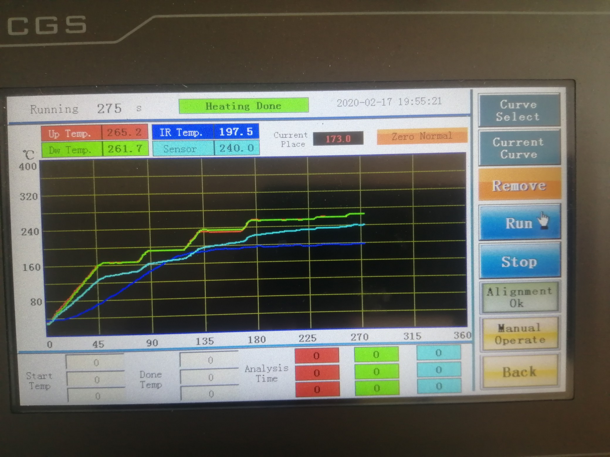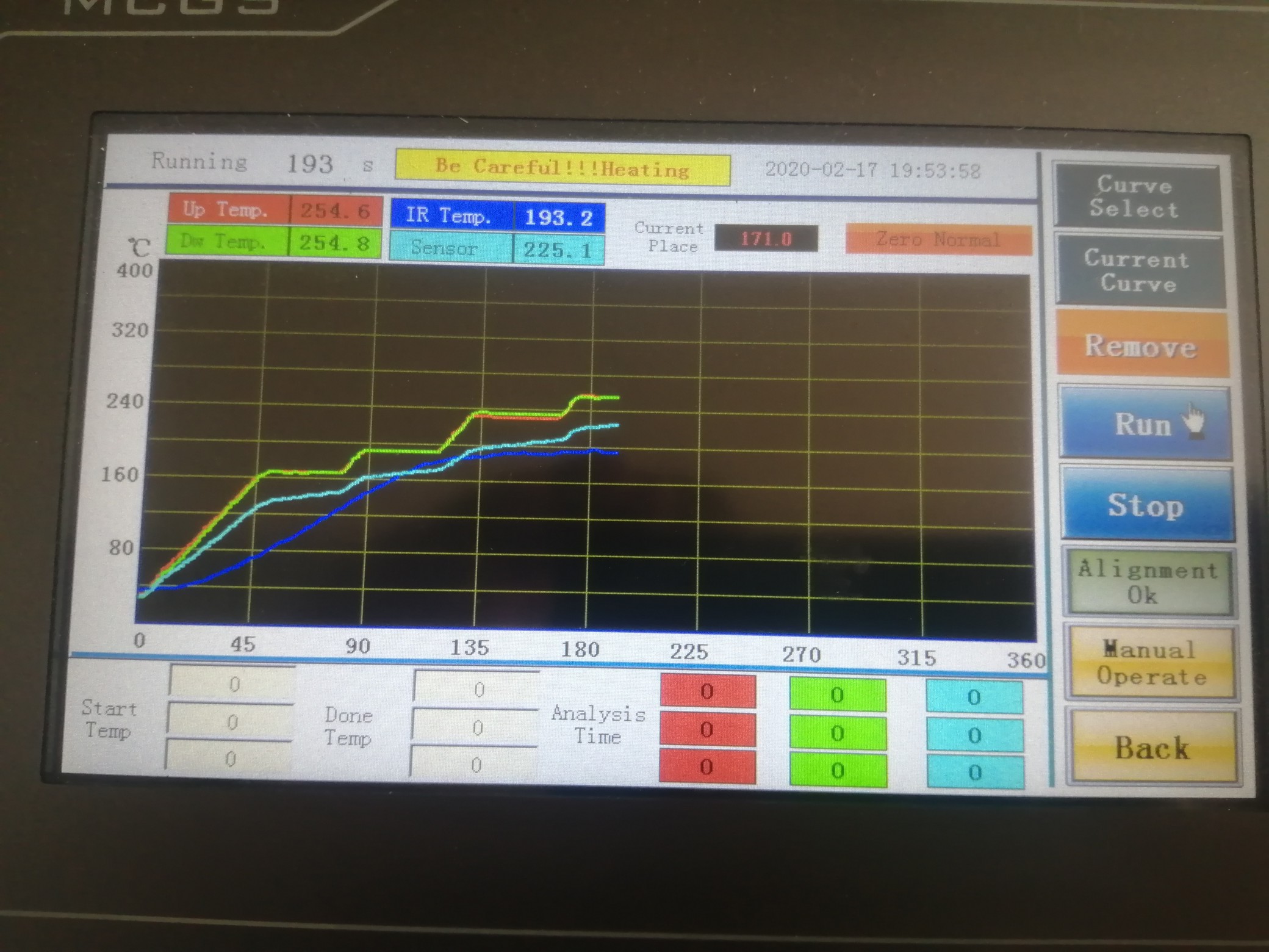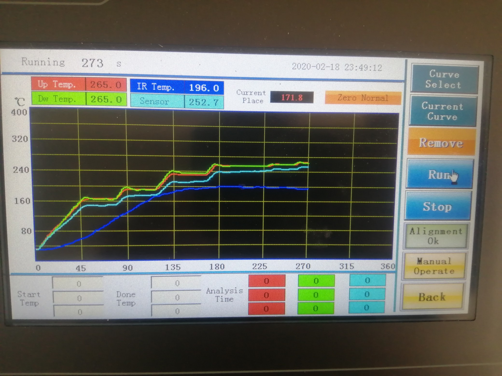 For this profile I have the bottom IR heater at 220C and the bottom air at same temp as the top air