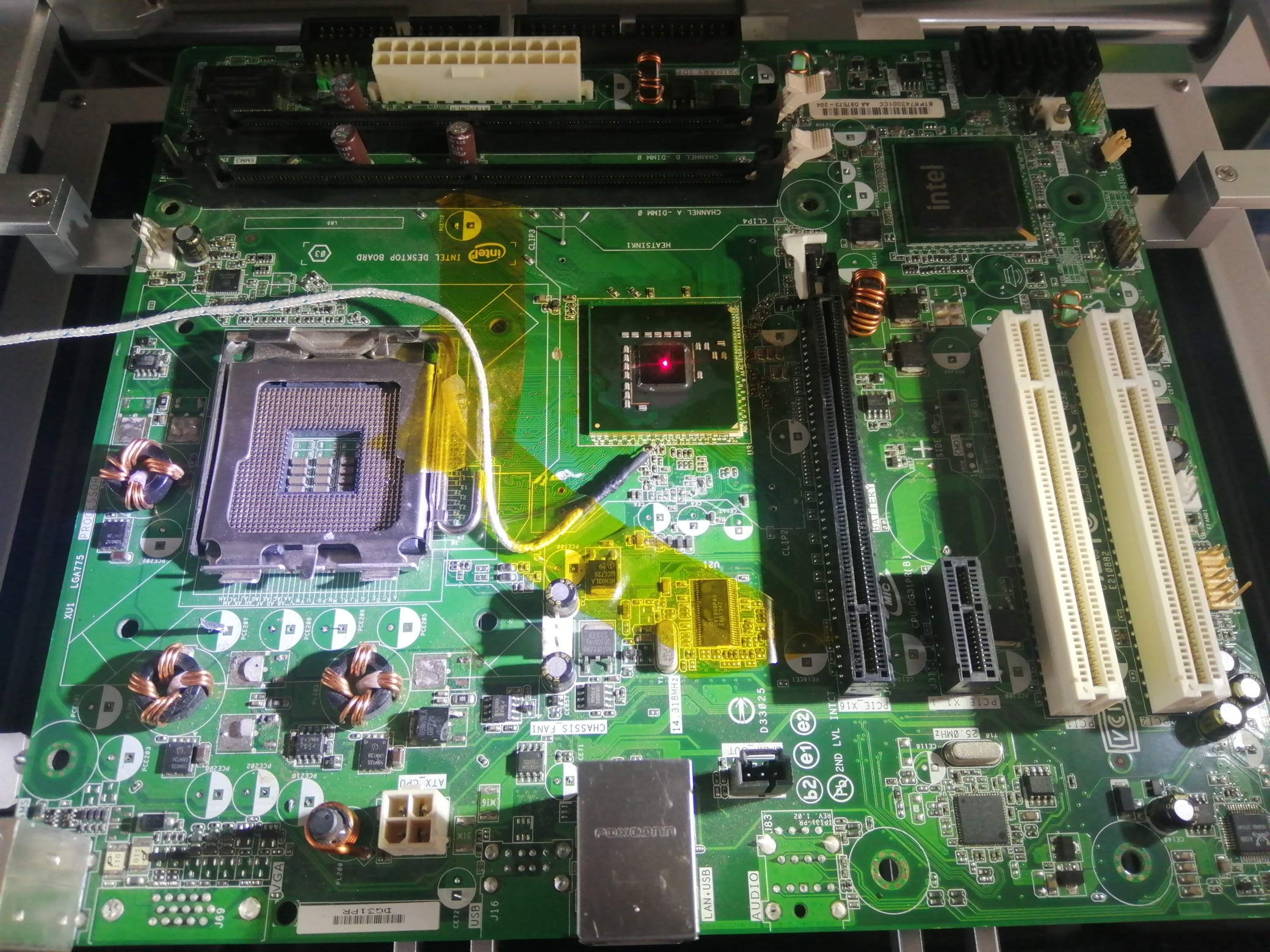 Previously I had found I can't remove north bridge or LGA CPU socket unless I use an even hotter profile. The hotter profile works in as much as it does desolder the component but always ends up lifting pads from the PCB towards the corners or on one edge