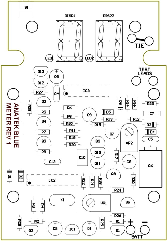 The microcontroller cannot perform detailed tests on every component, so it’s possible that your meter is malfunctioning even though the self-testing hasn’t shown up a problem. For example, if the meter is behaving strangely, “freezing” up or giving absurd readings on some values of test resistors, the most likely cause is a mix-up in the values of R6 (10kΩ), R8 (1kΩ) and R10 (100Ω). On the other hand, if the meter produces readings but there’s something wrong with the displayed characters, this is almost certainly due to one or more solder bridges between the pins of the displays or around IC3.