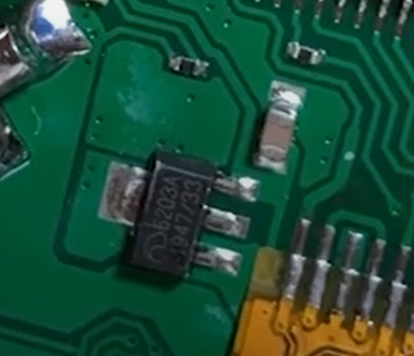 Edit: I found someone who took it apart and I saw that he had another type of voltage regulator. I attached that picture as well.