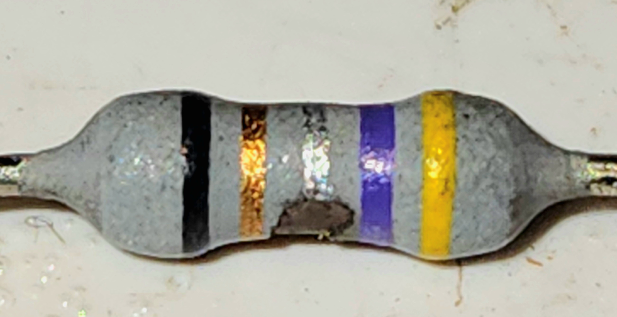 I have a quad charger that is split into 4 separate sections and one section doesn’t charge anymore. I have located what I think is a thermistor and on the shrink tube it says 125 degrees C. I cut the shrink tube and it's a 33 ohms resistor. It measures a little less than 1/2 inch in length. I am including pictures of it. Please help me identify it. So, it should test at 0.4ohms and probably go up in resistance with the rise in temp. On the board it clearly says R for resistor. But it has to be a special one.
