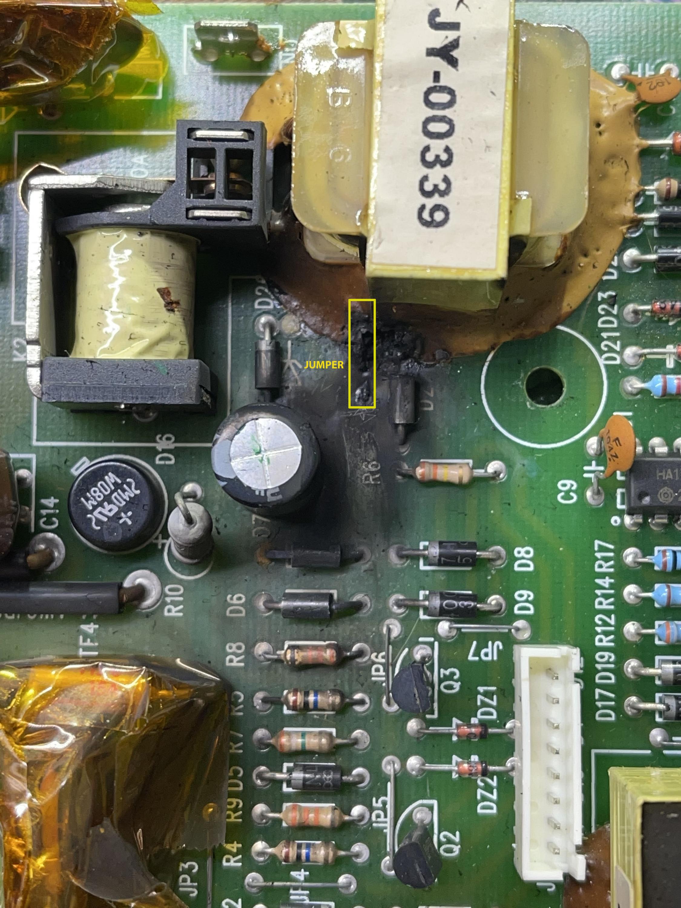 What is the significance of all this? Well, there were no components that were faulty to cause this short. This was caused by the glue that was bridging the jumper with the Anode side of the diode which when the glue got conductive enough, POOF!! Luckily I had the power cord in my hand at the moment this happened and was able to pull the plug really quick. But this can happen at any time and has the potential to cause a fire especially if the housing of the device is made of wood (such as a subwoofer) or plastic.