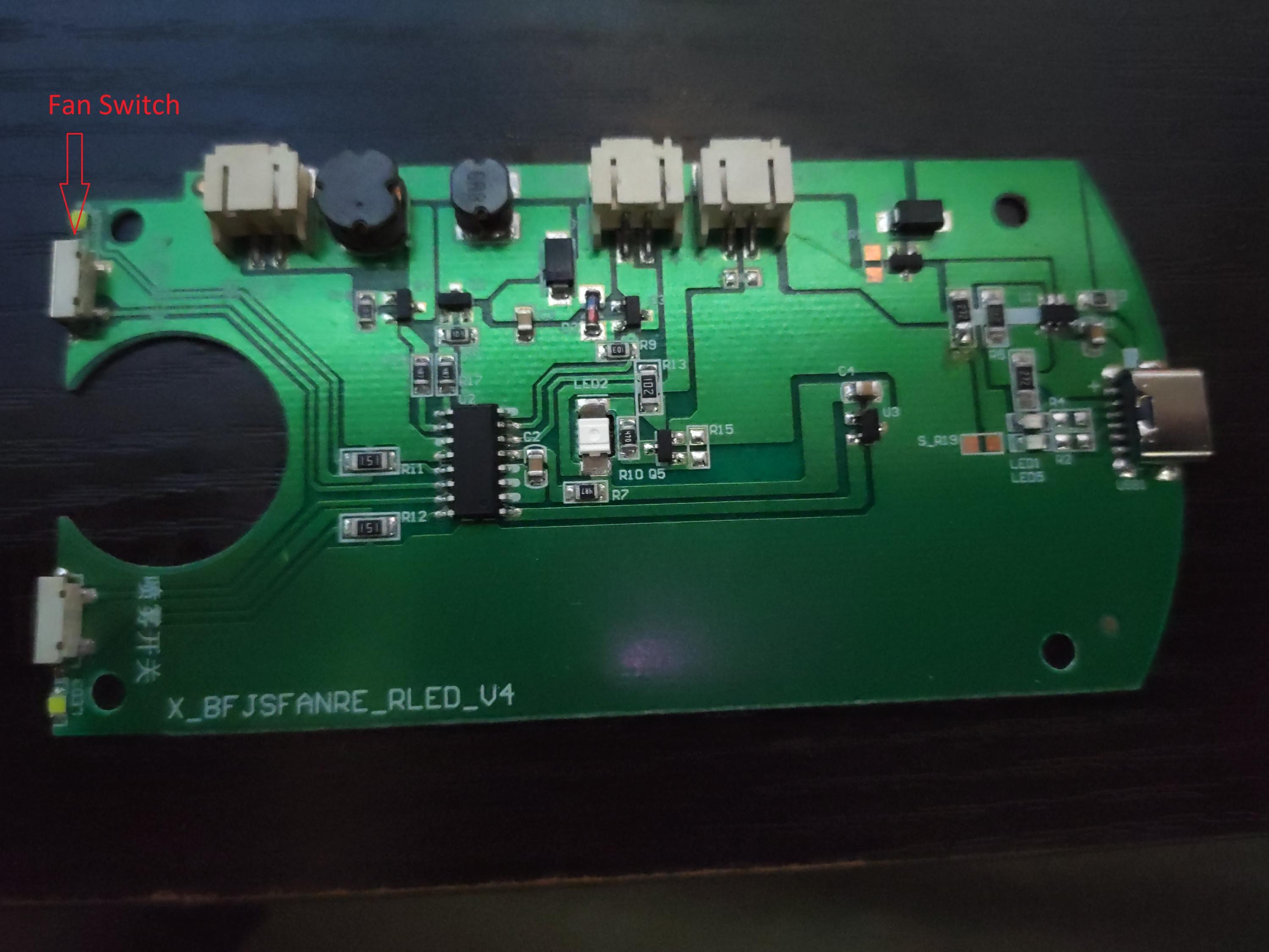 Could the USB IC be responsible for the speed control issues? There is a 6-legged IC near the USB port. There's also some LEDs nearby. One is green and another is red. The green LED looks to be for when everything is OK and working. I've seen the green LED shining when I used the fan before.